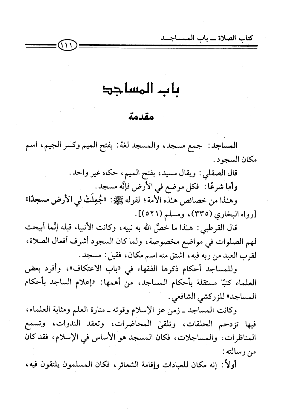 المساجد: جمع مسجد، والمسجد لغة: بفتح الميم وكسر الجيم، اسم مكان السجود.