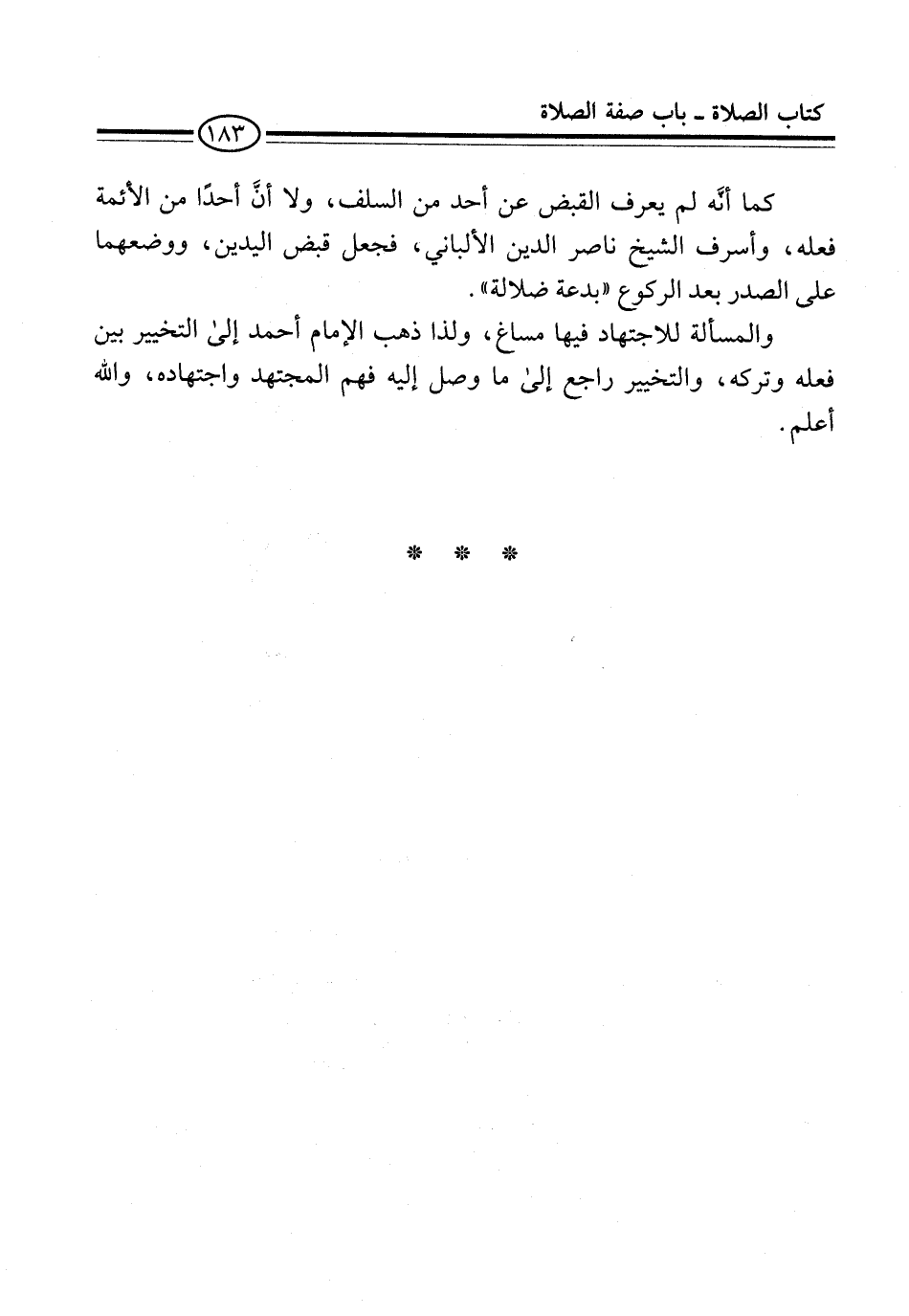 كما أنه لم يعرف القبض عن أحد من السلف، ولا أنَّ أحدًا من الأئمة فعله، وأسرف الشيخ ناصر الدين الألباني، فجعل قبض اليدين، ووضعهما على الصدر بعد الركوع "بدعة ضلالة".
