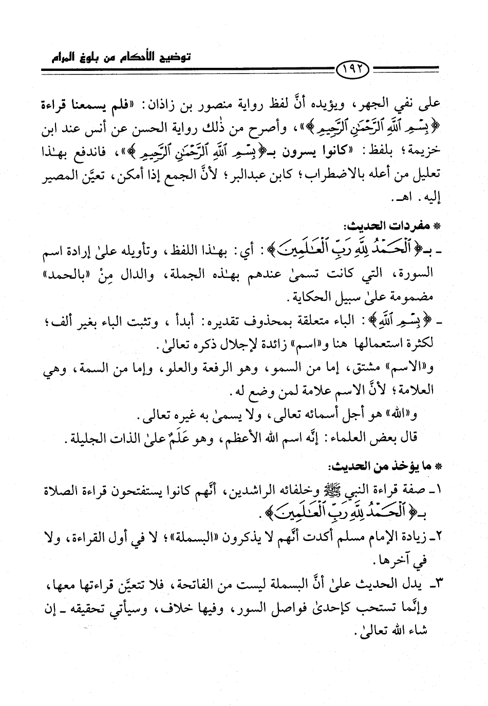 1 - صفة قراءة النبي -صلى الله عليه وسلم- وخلفائه الراشدين، أنَّهم كانوا يستفتحون قراءة الصلاة بـ {الْحَمْدُ لِلَّهِ رَبِّ الْعَالَمِينَ}.