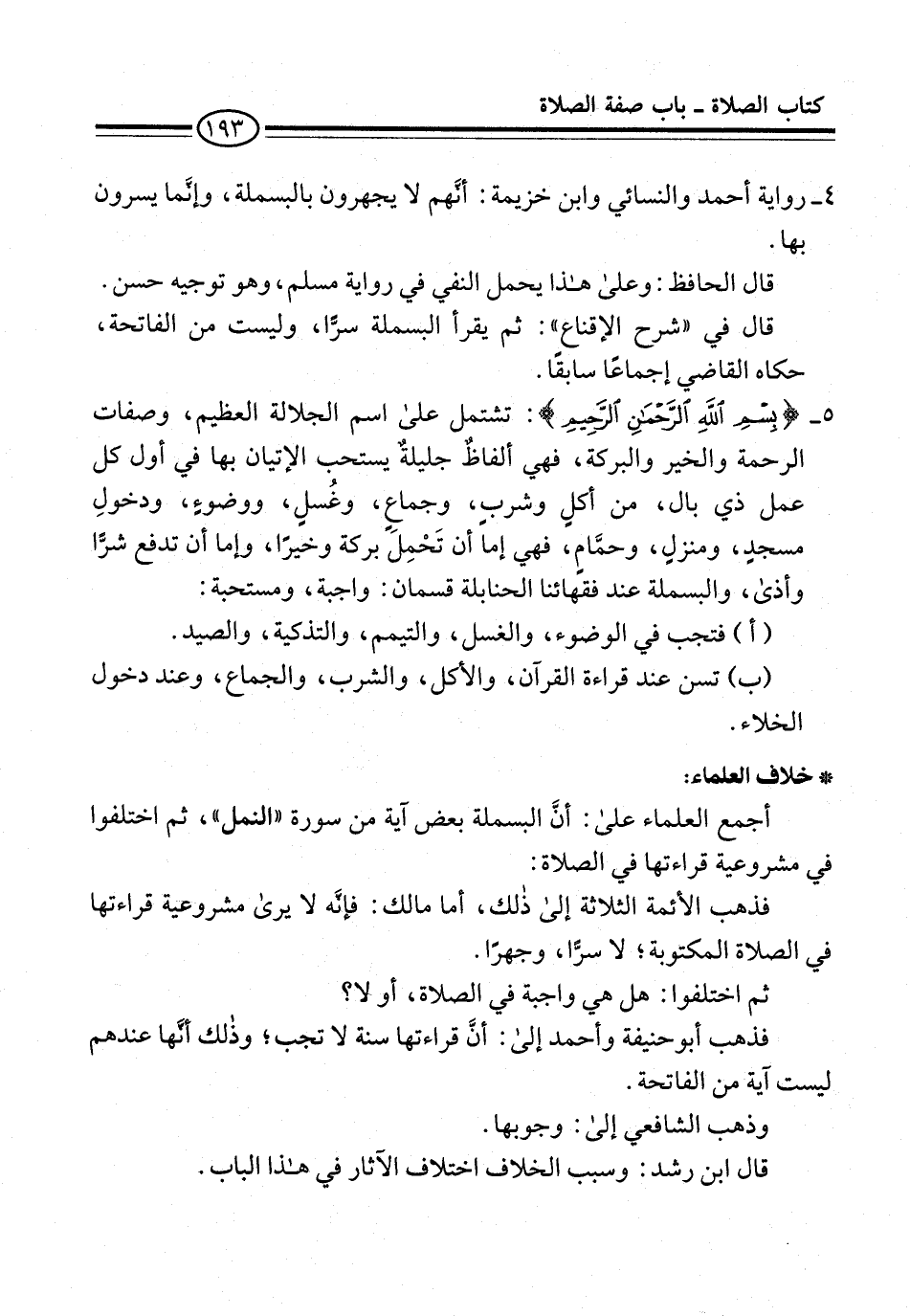 أجمع العلماء على: أنَّ البسملة بعض آية من سورة "النمل"، ثم اختلفوا في مشروعية قراءتها في الصلاة: