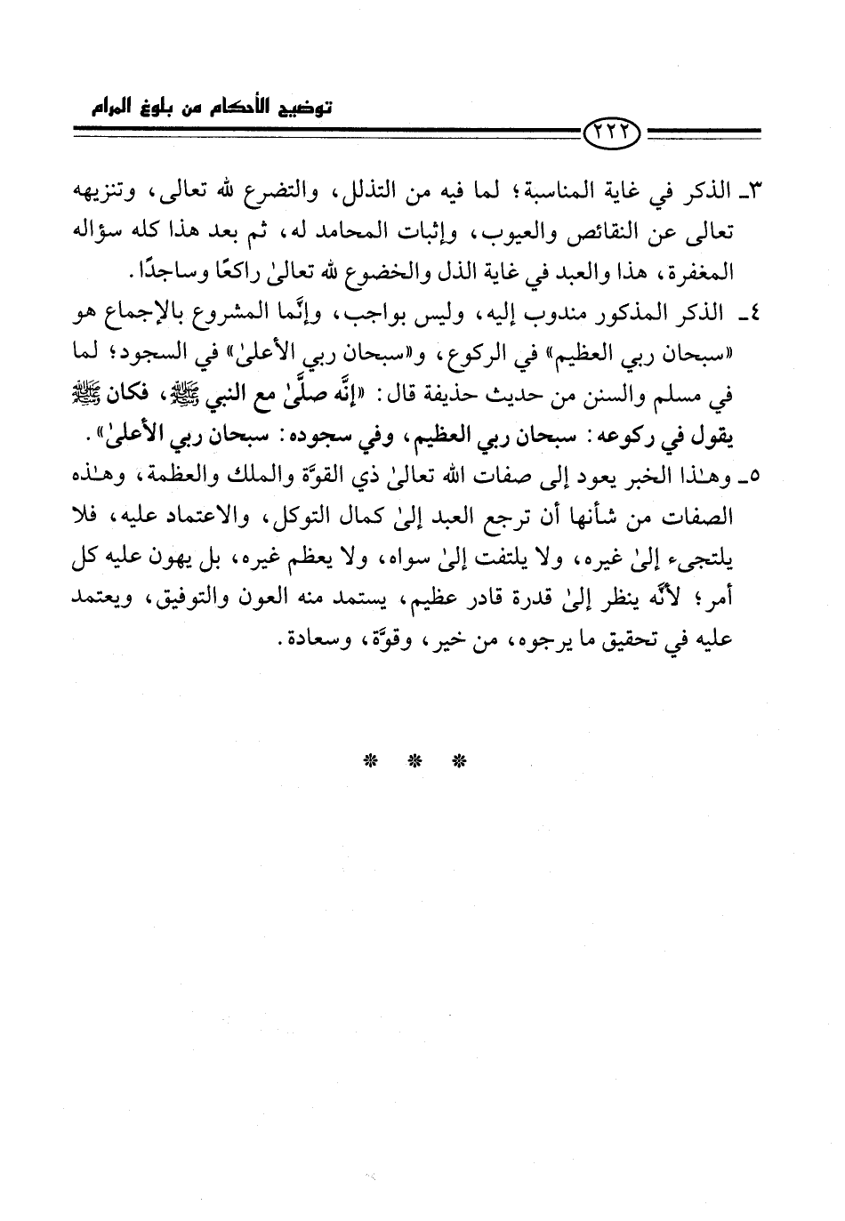 3 - الذكر في غاية المناسبة، لما فيه من التذلل، والتضرع لله تعالى، وتنزيهه تعالى عن النقائص والعيوب، وإثبات المحامد له، ثم بعد هذا كله سؤاله المغفرة، هذا والعبد في غاية الذل والخضوع لله تعالى راكعًا وساجدًا.