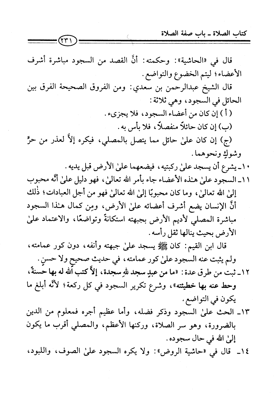 قال الشيخ عبد الرحمن بن سعدي: ومن الفروق الصحيحة الفرق بين الحائل في السجود، وهي ثلاثة: