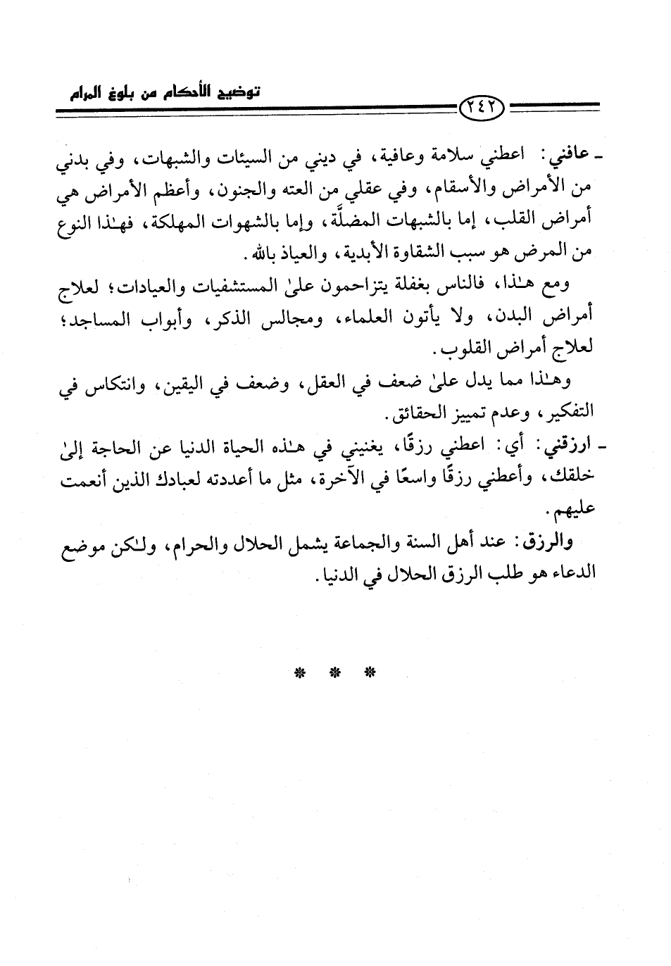 - عافني: اعطني سلامة وعافية، في ديني من السيئات والشبهات، وفي بدني من الأمراض والأسقام، وفي عقلي من العته والجنون، وأعظم الأمراض هي أمراض القلب، إما بالشبهات المضلَّة، وإما بالشهوات المهلكة، فهذا النوع من المرض هو سبب الشقاوة الأبدية، والعياذ بالله.