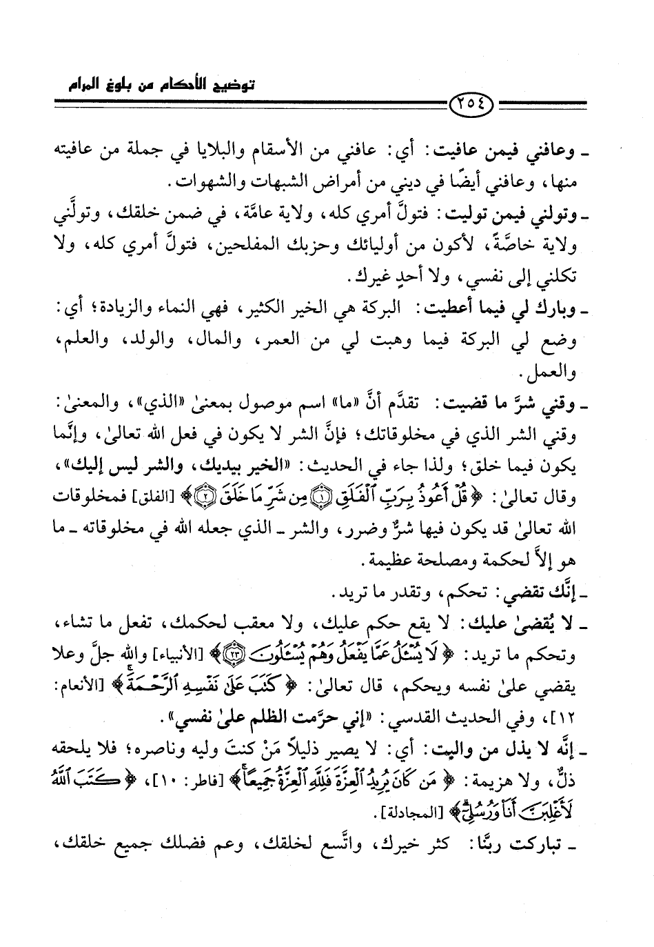 - وتولني فيمن توليت: فتولَّ أمري كله، ولاية عامَّة، في ضمن خلقك، وتولَّني ولاية خاصَّةً، لأكون من أوليائك وحزبك المفلحين، فتولَّ أمري كله، ولا تكلني إلى نفسي، ولا أحدٍ غيرك.