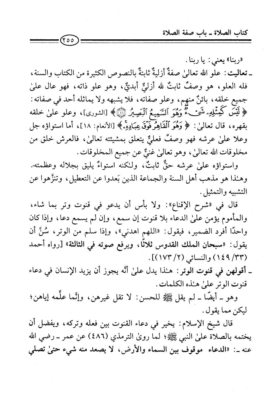 - تعاليت: علو الله تعالى صفةٌ أزليةٌ ثابتةٌ بالنصوص الكثيرة من الكتاب والسنة، فله العلو، هو وصفٌ ثابتٌ لله أزليٌّ أبديٌّ، وهو علو ذاته، فهو عال على جميع خلقه، بائنٌ منهم، وعلو صفاته، فلا يشبهه ولا يماثله أحد في صفاته: {لَيْسَ كَمِثْلِهِ شَيْءٌ وَهُوَ السَّمِيعُ الْبَصِيرُ (11)} [الشورى]، وعلو على خلقه بقهره، قال تعالى: {وَهُوَ الْقَاهِرُ فَوْقَ عِبَادِهِ} [الأنعام: 18]، أما استواؤه جل وعلا على عرشه فهو وصفٌ فعليٌّ يتعلق بمشيئته تعالى، فالعرش خلق من مخلوقات الله تعالى، وهو تعالى غنيٌّ عن جميع المخلوقات.