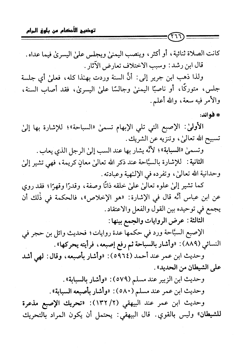 وحديث ابن عمر عند البيهقي (2/ 132): "تحريك الإصبع مذعرة للشيطان" وليس بالقوي. قال البيهقي: يحتمل أن يكون المراد بالتحريك