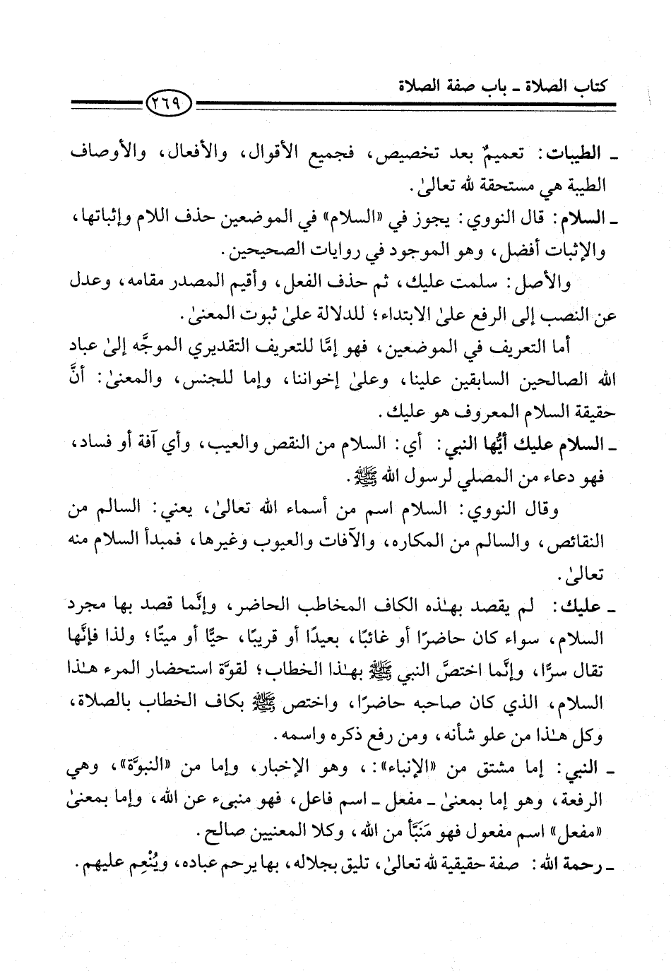 - السلام: قال النووي: يجوز في "السلام" في الموضعين حذف اللام وإثباتها، والإثبات أفضل، وهو الموجود في روايات الصحيحين.