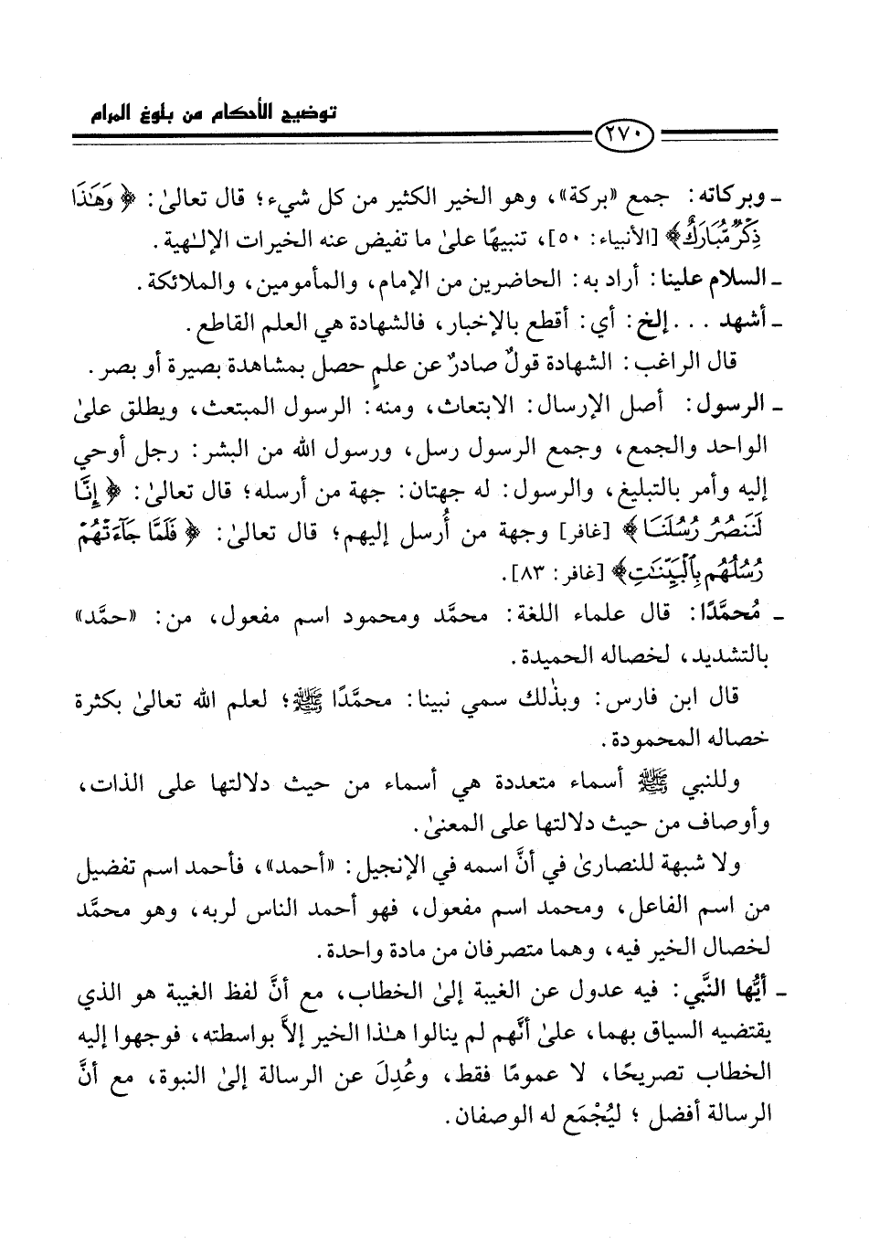 - مُحمَّدًا: قال علماء اللغة: محمَّد ومحمود اسم مفعول، من: "حمَّد" بالتشديد، لخصاله الحميدة.