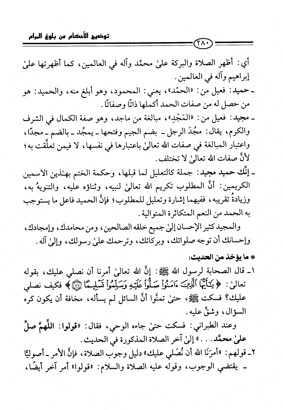 1 - قال الصحابة لرسول الله -صلى الله عليه وسلم-: إن الله تعالى أمرنا أن نصلي عليك، بقوله تعالى: {يَاأَيُّهَا الَّذِينَ آمَنُوا صَلُّوا عَلَيْهِ وَسَلِّمُوا تَسْلِيمًا (56)} فكيف نصلي عليك؟ فسكت -صلى الله عليه وسلم-، حتى تمنَّوا أنَّ السائل لم يسأله، مخافة أن يكون كره السؤال، وشقَّ عليه.