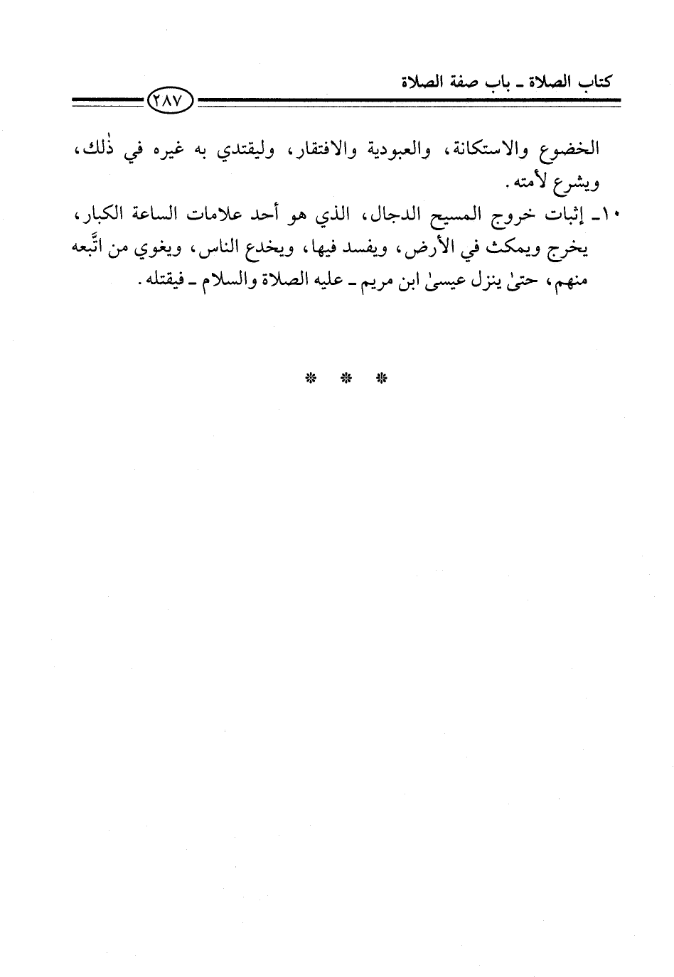 10 - إثبات خروج المسيح الدجال، الذي هو أحد علامات الساعة الكبار، يخرج ويمكث في الأرض، ويفسد فيها، ويخدع الناس، ويغوي من اتَّبعه منهم، حتى ينزل عيسى ابن مريم -عليه الصلاة والسلام- فيقتله.
