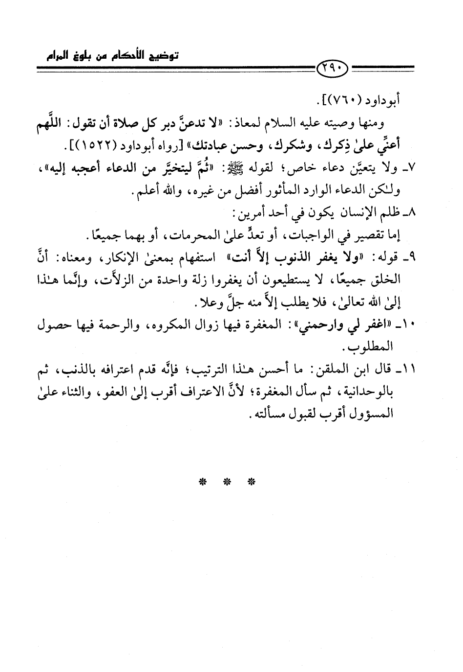 7 - ولا يتعيَّن دعاء خاص؛ لقوله -صلى الله عليه وسلم-: "ثُمَّ ليتخيَّر من الدعاء أعجبه إليه"، ولكن الدعاء الوارد المأثور أفضل من غيره، والله أعلم.