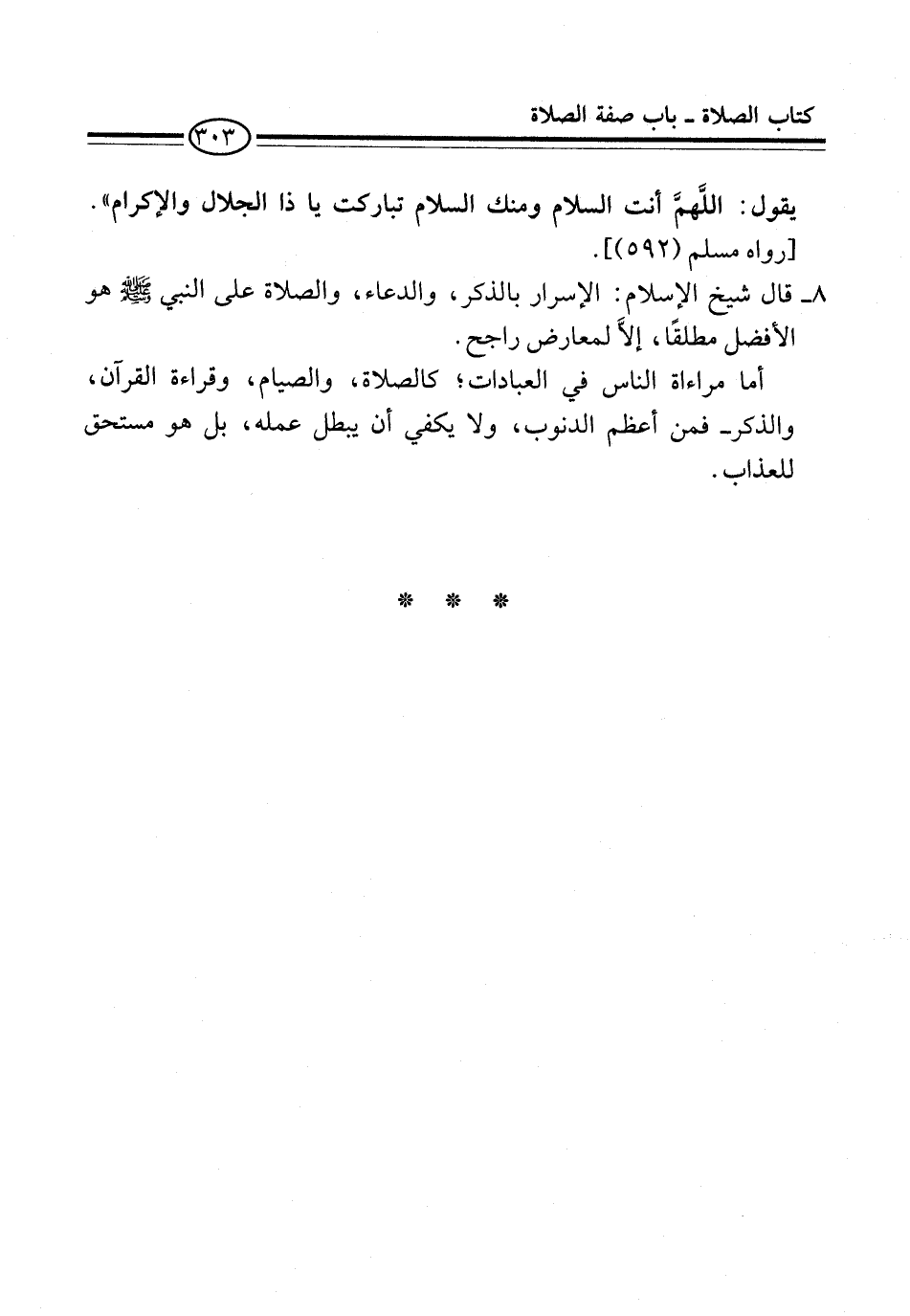 يقول: اللَّهمَّ أنت السلام ومنك السلام تباركت يا ذا الجلال والإكرام". [رواه مسلم (592)].