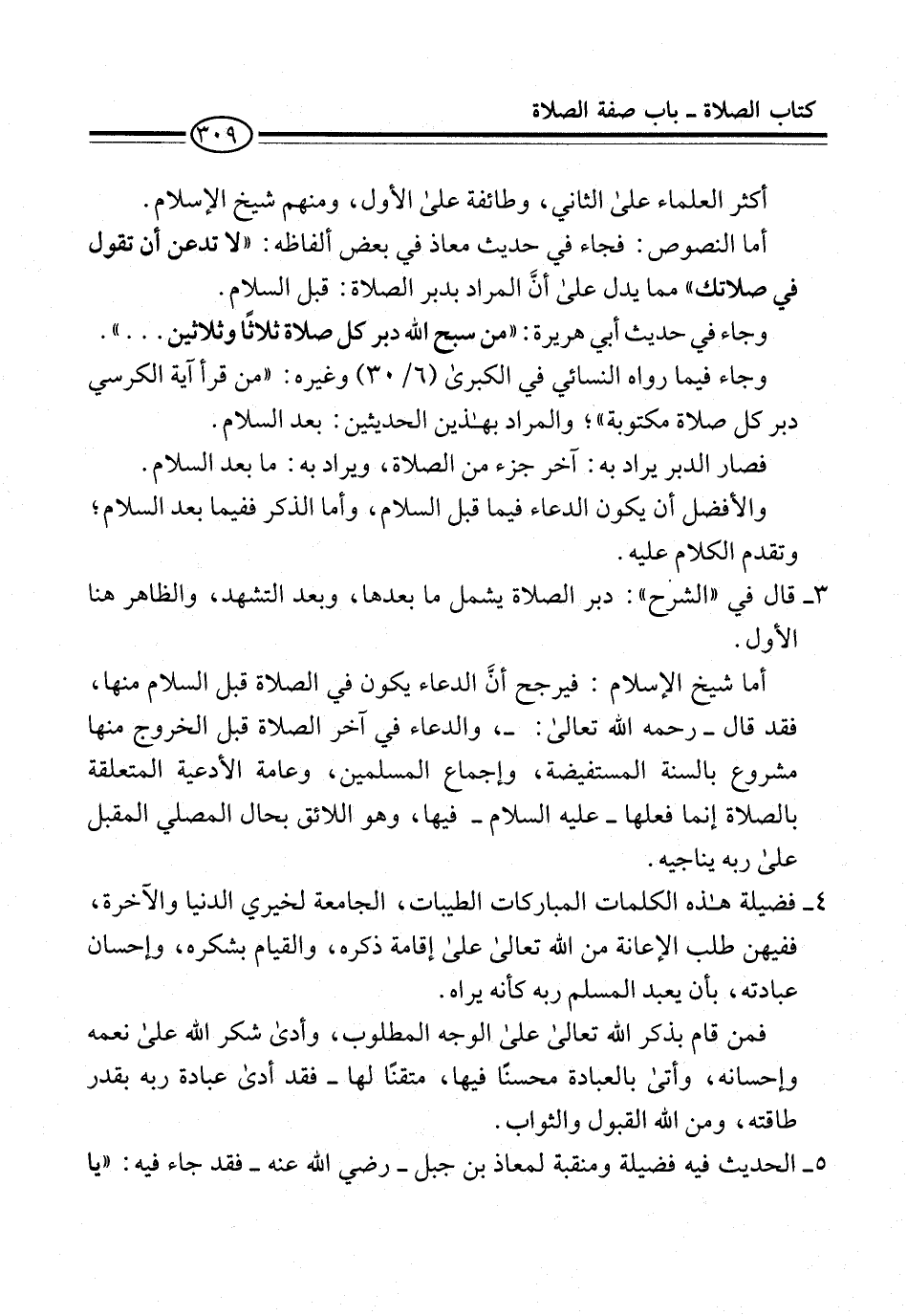 4 - فضيلة هذه الكلمات المباركات الطيبات، الجامعة لخيري الدنيا والآخرة، ففيهن طلب الإعانة من الله تعالى على إقامة ذكره، والقيام بشكره، وإحسان عبادته، بأن يعبد المسلم ربه كأنه يراه.