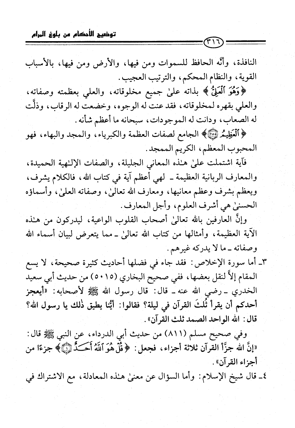 وفي صحيح مسلم (811) من حديث أبي الدرداء، عن النبي -صلى الله عليه وسلم- قال: "إنَّ الله جزَّأ القرآن ثلاثة أجزاء، فجعل: {قُلْ هُوَ اللَّهُ أَحَدٌ (1)} جزءًا من أجزاء القرآن".