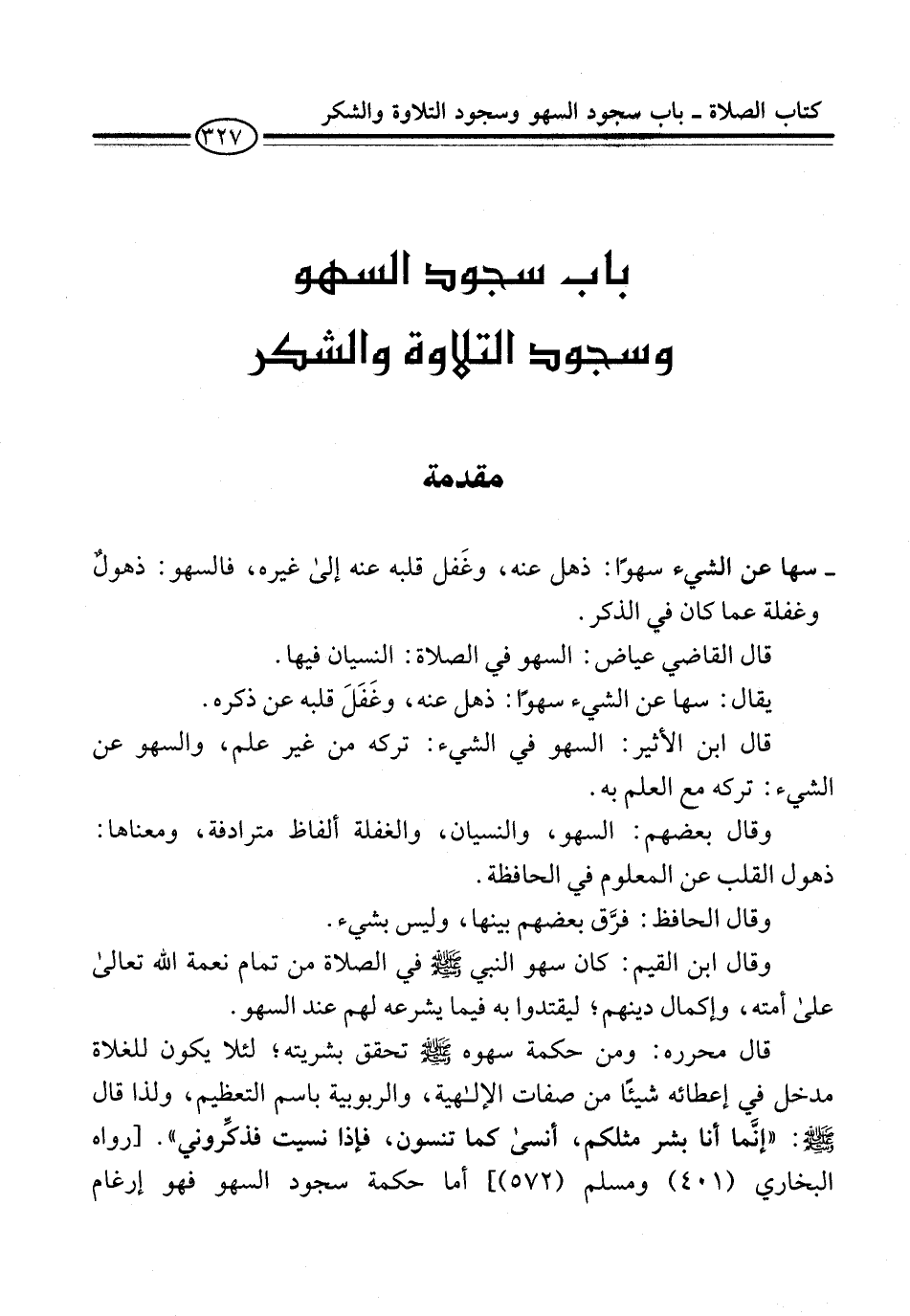 باب سجود السهو وسجود التلاوة والشكر