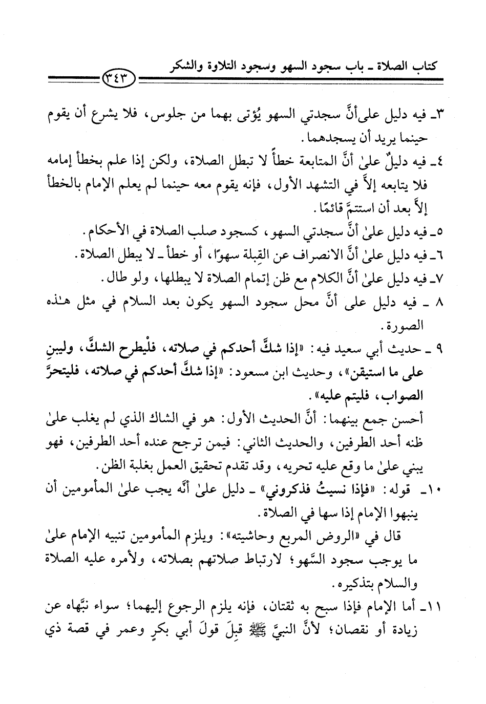 3 - فيه دليل على أنَّ سجدتي السهو يُؤتى بهما من جلوس، فلا يشرع أن يقوم حينما يريد أن يسجدهما.