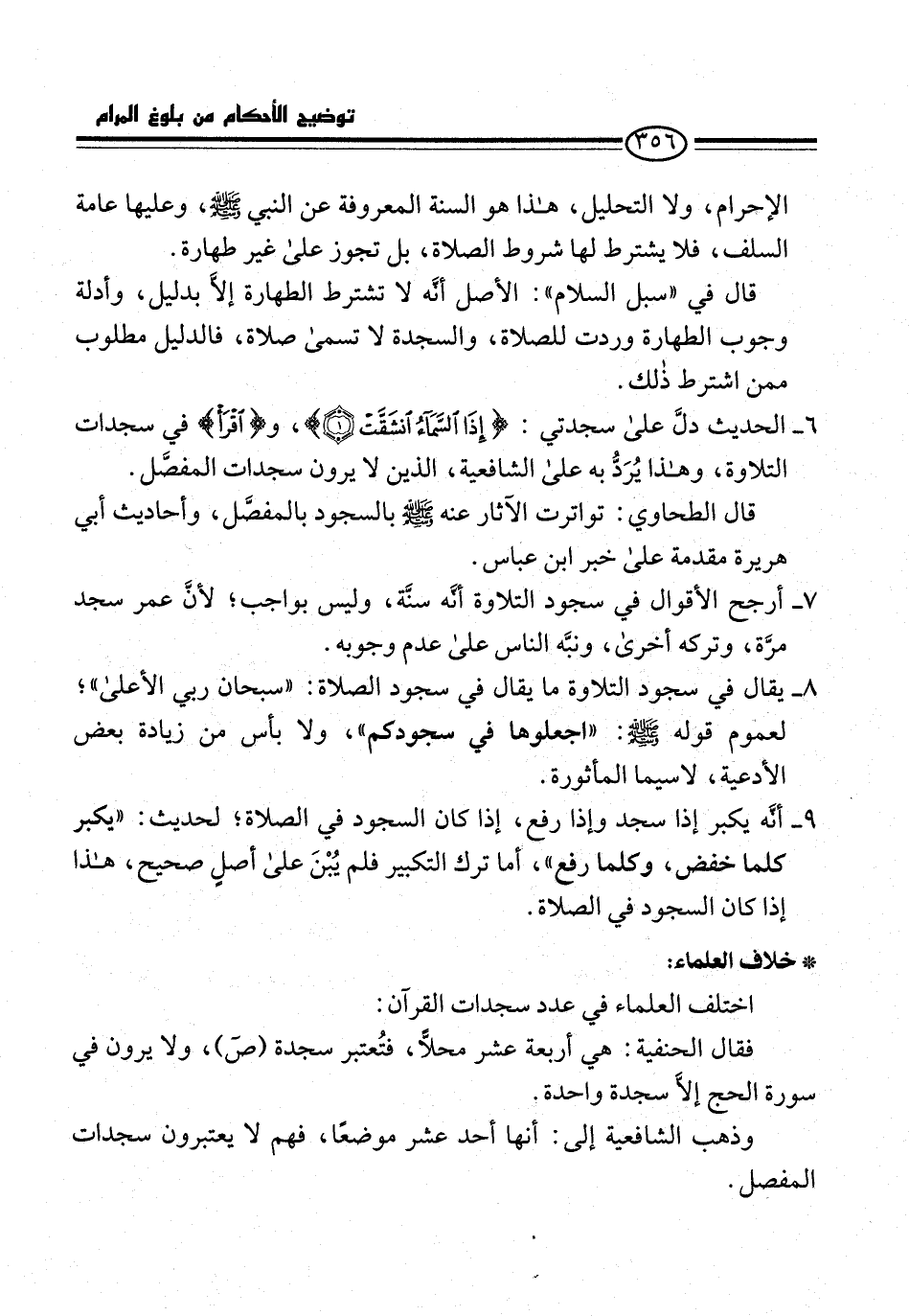 7 - أرجح الأقوال في سجود التلاوة أنَّه سنَّة، وليس بواجب؛ لأنَّ عمر سجد مرَّة، وتركه أخرى، ونبَّه الناس على عدم وجوبه.