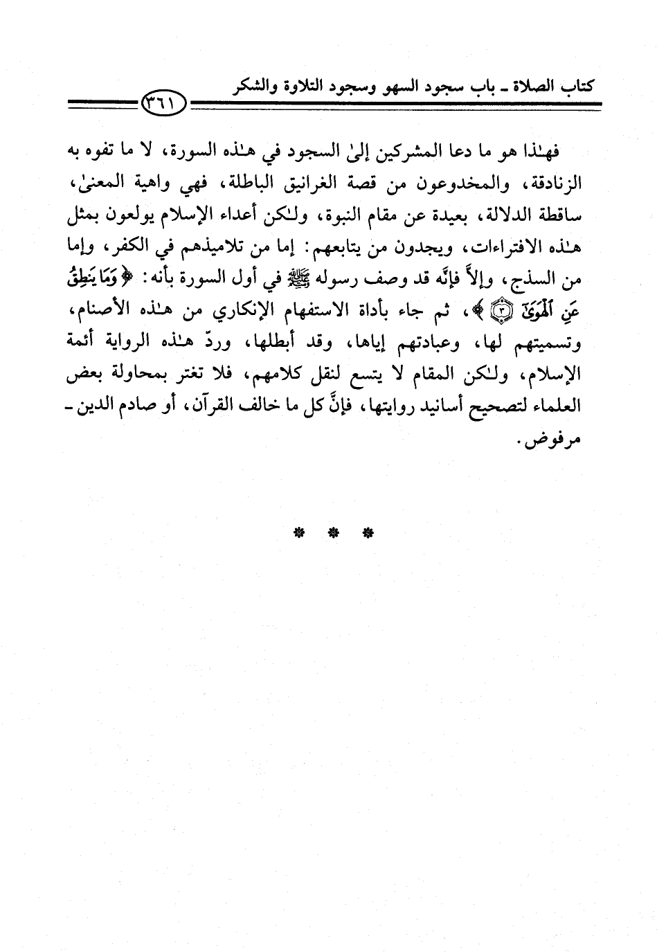 فهذا هو ما دعا المشركين إلى السجود في هذه السورة، لا ما تفوه به الزنادقة، والمخدوعون من قصة الغرانيق الباطلة، فهي واهية المعنى، ساقطة الدلالة، بعيدة عن مقام النبوة، ولكن أعداء الإسلام يولعون بمثل هذه الافتراءات، ويجدون من يتابعهم: إما من تلاميذهم في الكفر، وإما من السذج، وإلاَّ فإنَّه قد وصف رسوله -صلى الله عليه وسلم- في أول السورة بأنه: {وَمَا يَنْطِقُ عَنِ الْهَوَى (3)}، ثم جاء باداة الاستفهام الإنكاري من هذه الأصنام، وتسميتهم لها، وعبادتهم إياها، وقد أبطلها، وردّ هذه الرواية أئمة الإسلام، ولكن المقام لا يتسع لنقل كلامهم، فلا تغتر بمحاولة بعض العلماء لتصحيح أسانيد روايتها، فإنَّ كل ما خالف القرآن، أو صادم الدين -مرفوض.