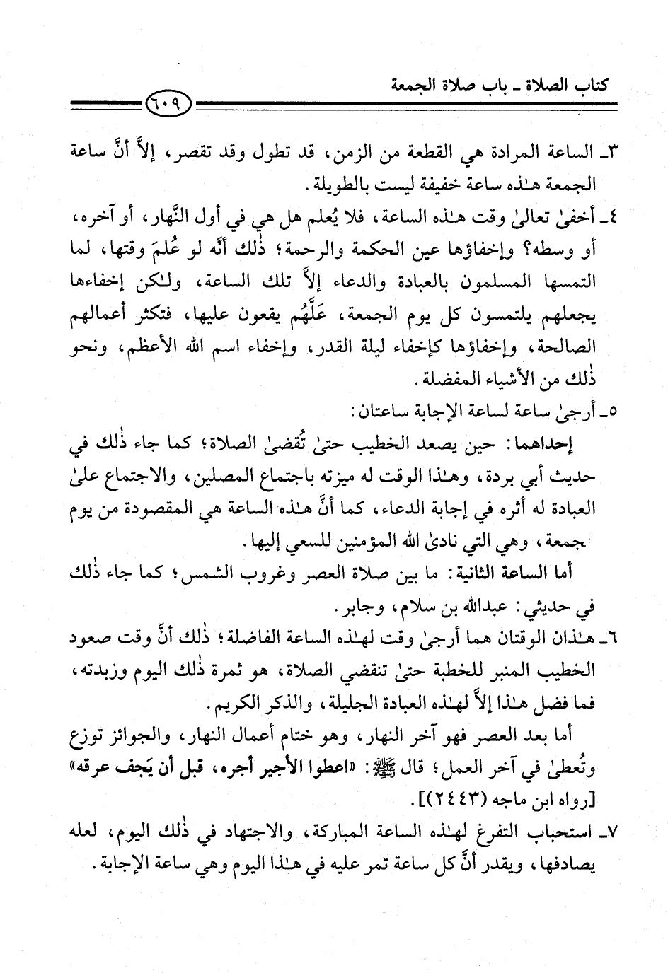 3 - الساعة المرادة هي القطعة من الزمن، قد تطول وقد تقصر، إلاَّ أنَّ ساعة الجمعة هذه ساعة خفيفة ليست بالطويلة.