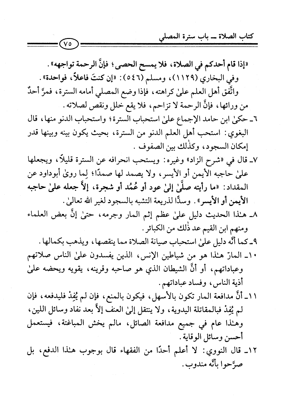 10 - المارّ هذا هو من شياطين الإنس، الذين يفسدون على الناس صلاتهم وعباداتهم، أو أنَّ الشيطان الذي هو صاحبه وقرينه، يقويه ويحضه على أذية الناس، وفساد عباداتهم.