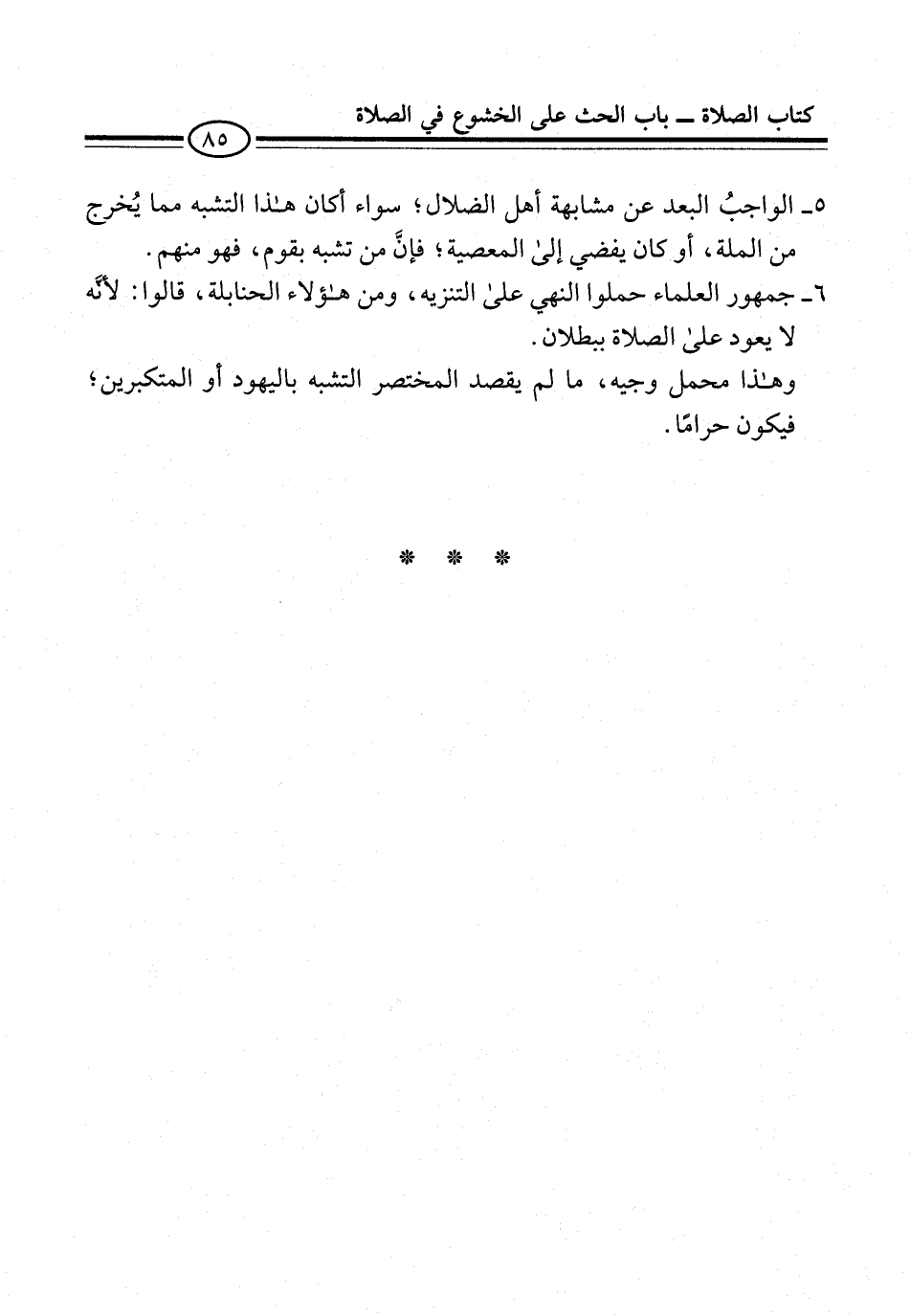5 - الواجبُ البعد عن مشابهة أهل الضلال؛ سواء أكان هذا التشبه مما يُخرج من الملة، أو كان يفضي إلى المعصية؛ فإنَّ من تشبه بقوم، فهو منهم.