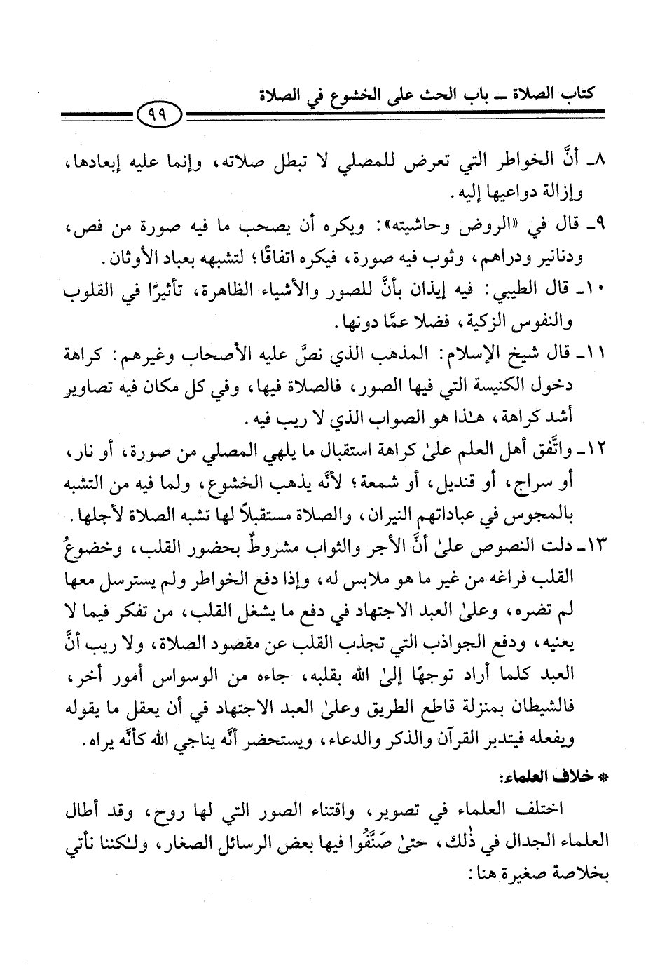 8 - أنَّ الخواطر التي تعرض للمصلي لا تبطل صلاته، وإنما عليه إبعادها، وإزالة دواعيها إليه.