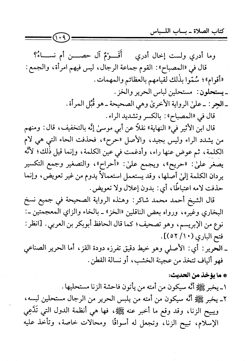 قال الشيخ أحمد محمد شاكر: وهذه الرواية الصحيحة في جميع نسخ البخاري وغيره، ورواه بعض الناقلين "الخز" -بالخاء والزاي المعجمتين-: نوع من الإبريسم، وهو تصحيف؛ كما قال الحافظ أبوبكر بن العربي. [انظر: فتح الباري (15/ 52)].