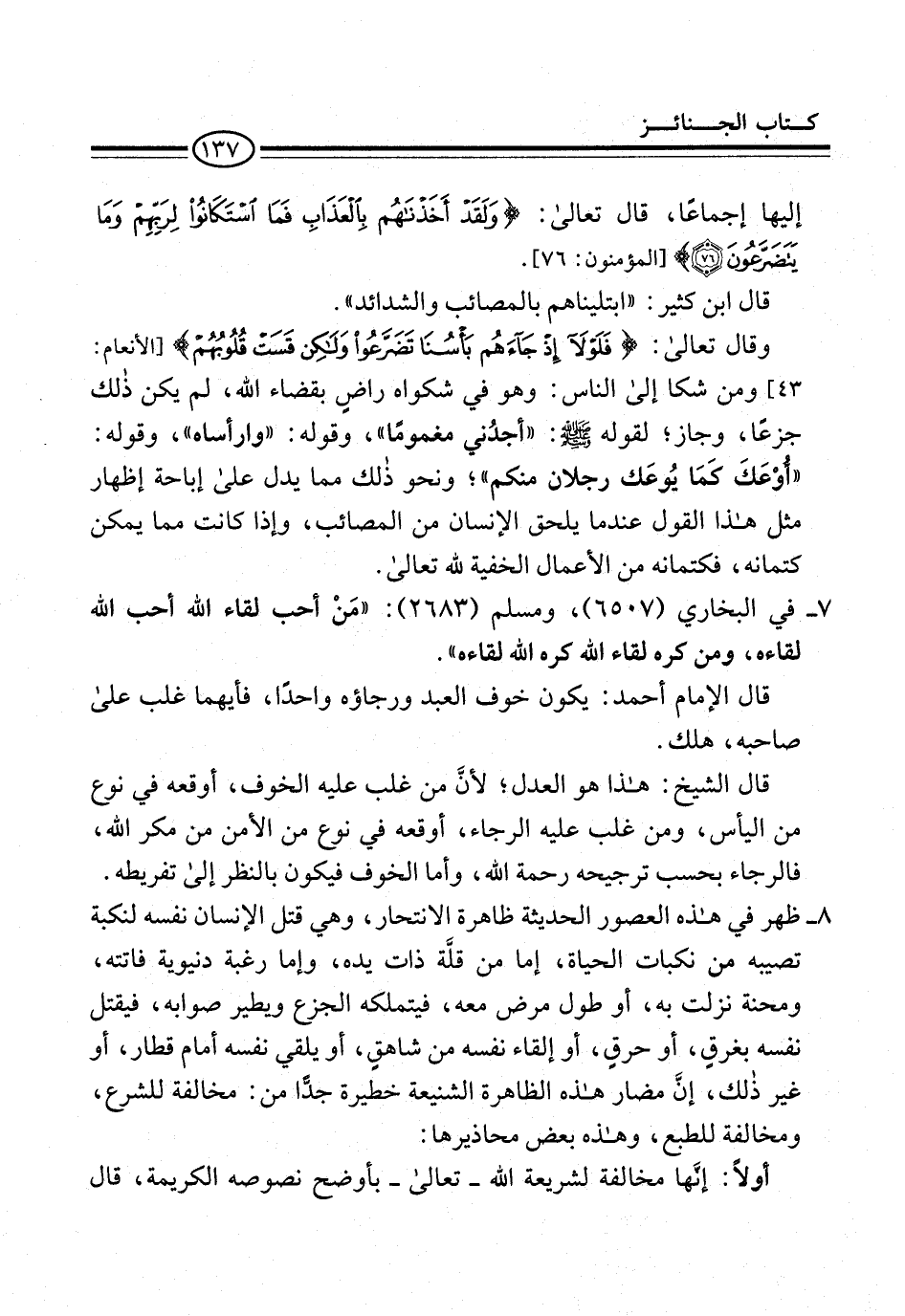 7 - في البخاري (6507)، ومسلم (2683): "مَنْ أحب لقاء الله أحب الله لقاءه، ومن كره لقاء الله كره الله لقاءه".