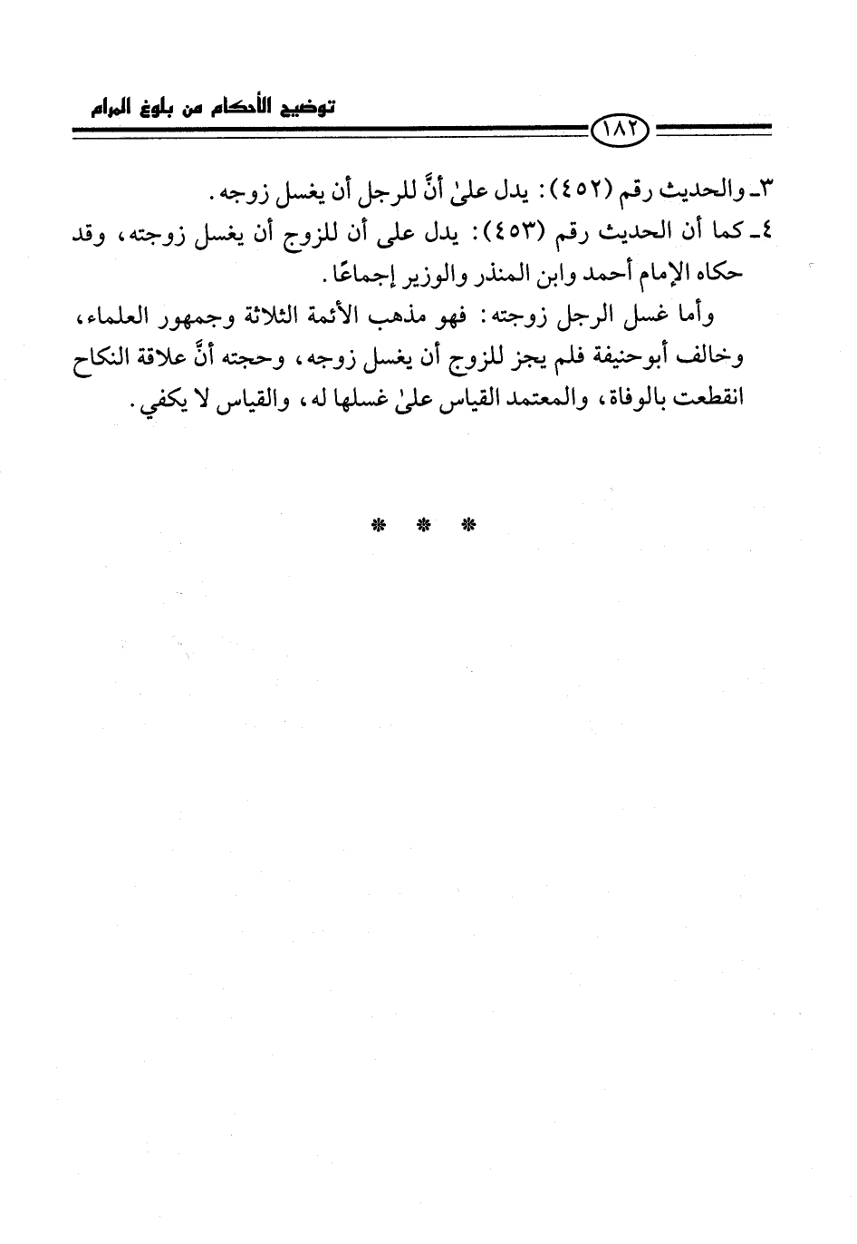 4 - كما أن الحديث رقم (453): يدل على أن للزوج أن يغسل زوجته، وقد حكاه الإمام أحمد وابن المنذر والوزير إجماعًا.