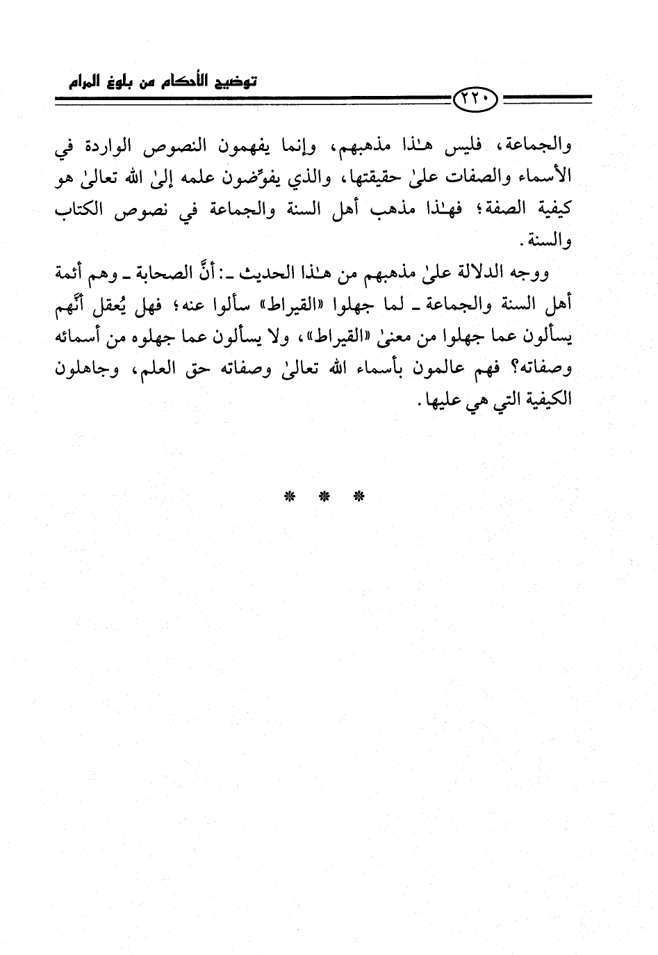 ووجه الدلالة على مذهبهم من هذا الحديث-: أنَّ الصحابة -وهم أئمة أهل السنة والجماعة- لما جهلوا "القيراط" سألوا عنه؛ فهل يُعقل أنَّهم يسألون عما جهلوا من معنى "القيراط"، ولا يسألون عما جهلوه من أسمائه وصفاته؟ فهم عالمون بأسماء الله تعالى وصفاته حق العلم، وجاهلون الكيفية التي هي عليها.