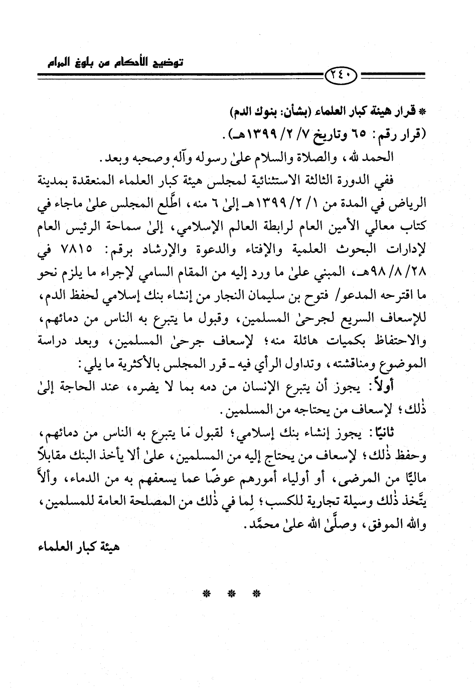 * قرار هيئة كبار العلماء (بشأن: بنوك الدم)