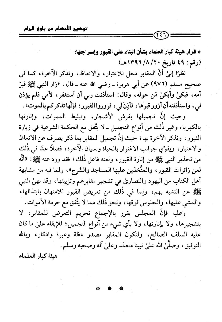 * قرار هيئة كبار العلماء بشأن البناء على القبور وإسراجها: