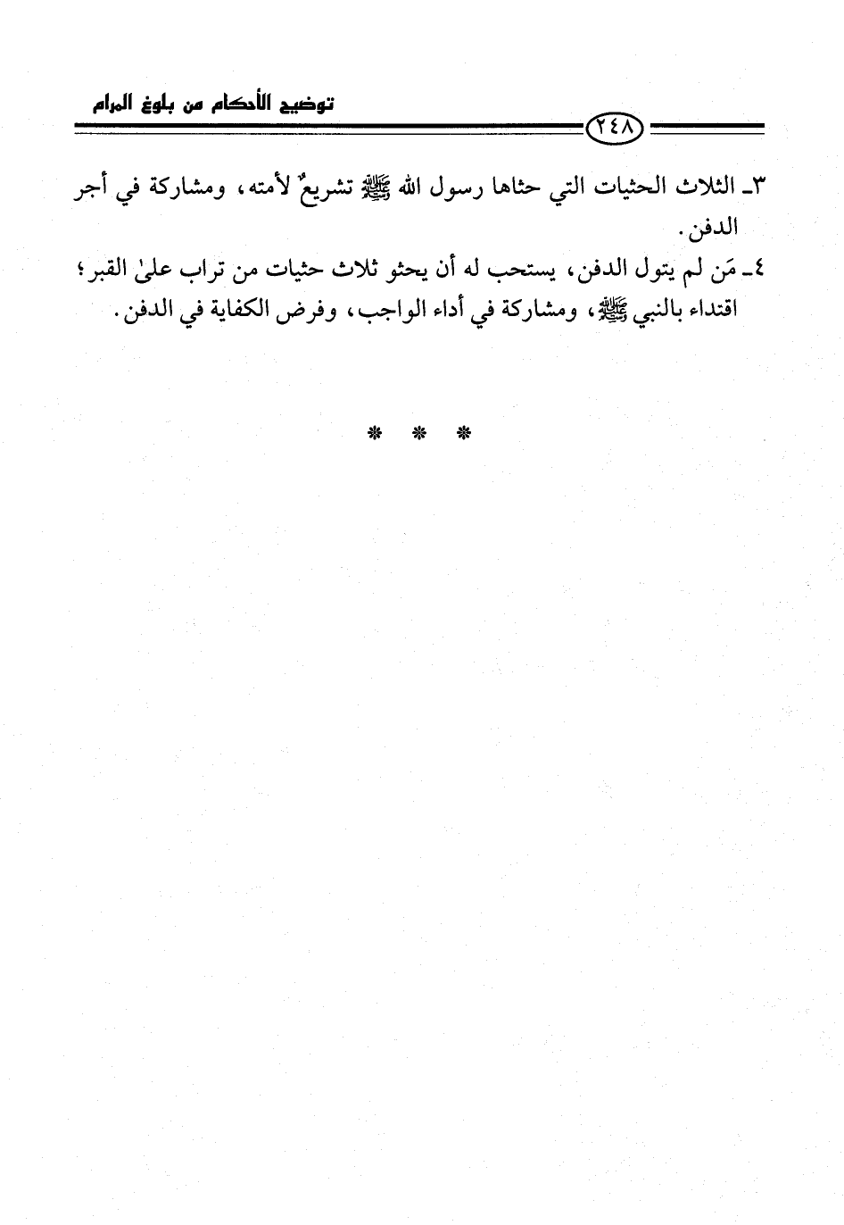 3 - الثلاث الحثيات التي حثاها رسول الله -صلى الله عليه وسلم- تشريعٌ لأمته، ومشاركة في أجر الدفن.