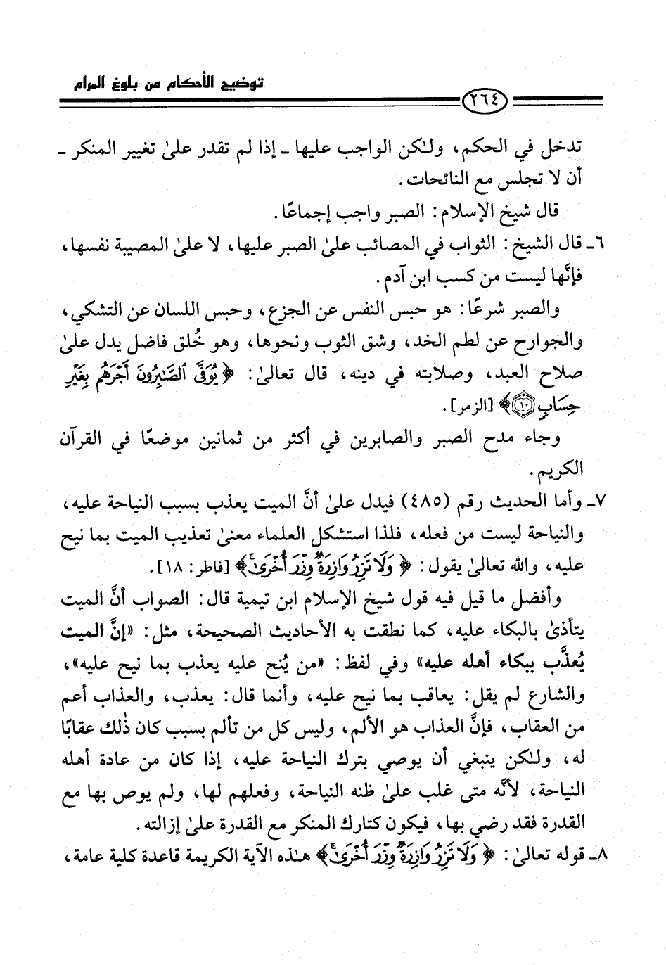 6 - قال الشيخ: الثواب في المصائب على الصبر عليها، لا على المصيبة نفسها، فإنَّها ليست من كسب ابن آدم.