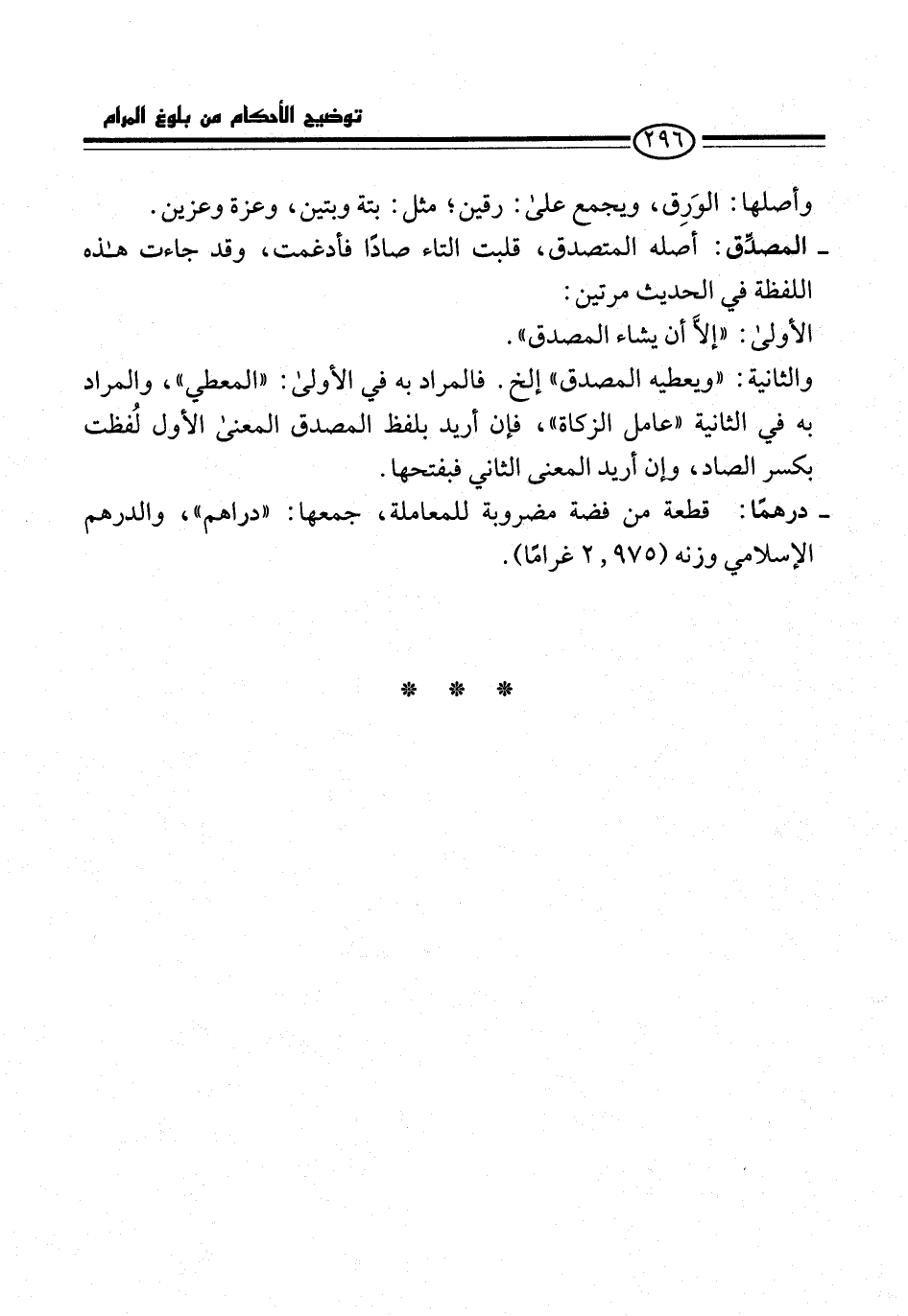 - درهمًا: قطعة من فضة مضروبة للمعاملة، جمعها: "دراهم"، والدرهم الإسلامي وزنه (2.975 غرامًا).
