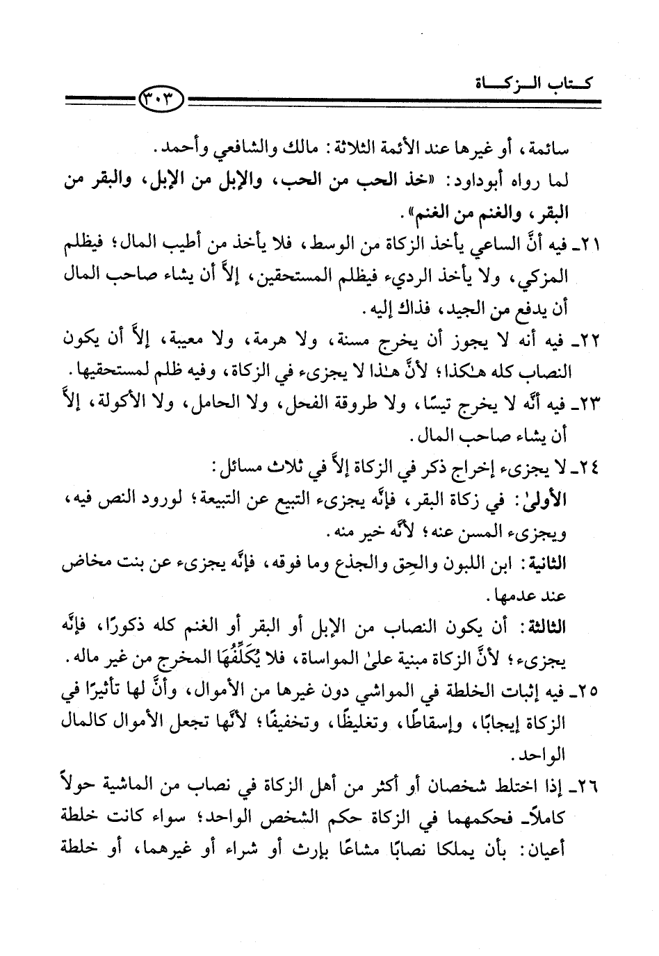 24 - لا يجزىء إخراج ذكر في الزكاة إلاَّ في ثلاث مسائل: