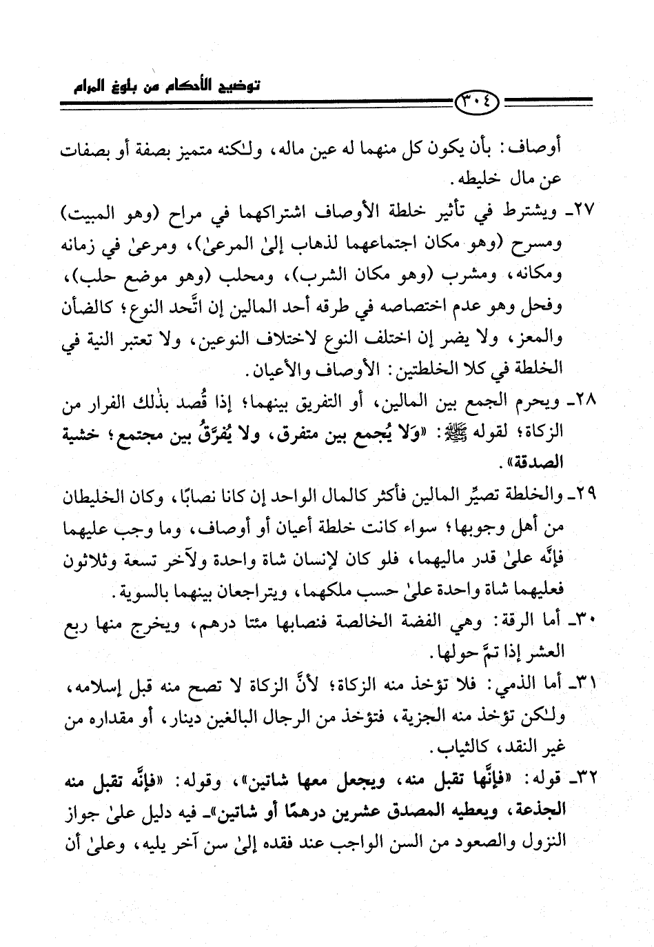 28 - ويحرم الجمع بين المالين، أو التفريق بينهما؟ إذا قُصد بذلك الفرار من الزكاة؛ لقوله -صلى الله عليه وسلم-: "وَلا يُجمع بين متفرق، ولا يُفرَّقُ بين مجتمع؟ خشية الصدقة".