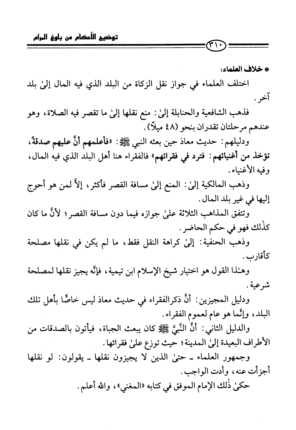 ودليلهم: حديث معاذ حين بعثه النبي -صلى الله عليه وسلم-: "فأعلمهم أنَّ عليهم صدقةً، تؤخذ من أغنيائهم: فترد في فقرائهم" فالفقراء هنا أهل البلد الذي فيه المال، وفيه الأغنياء.
