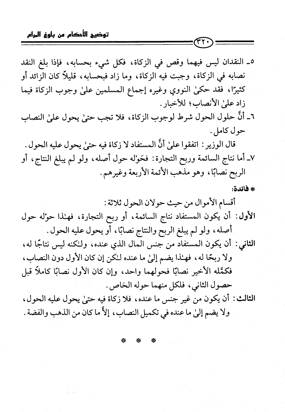 7 - أما نتاج السائمة وربح التجارة: فحَوْله حول أصله، ولو لم يبلغ النتاج، أو الربح نصابًا، وهو مذهب الأئمة الأربعة وغيرهم.