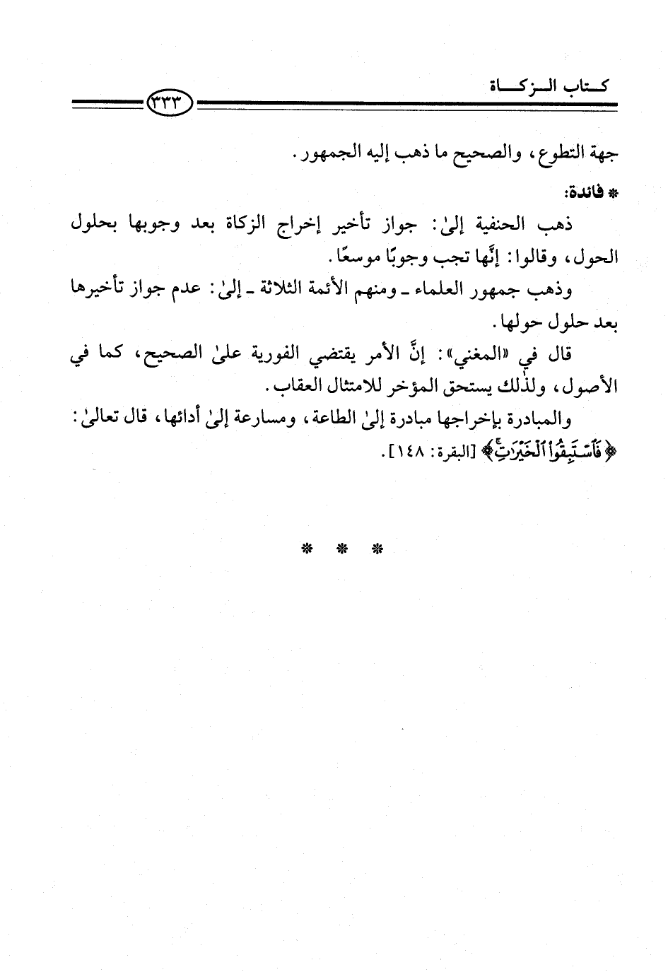 والمبادرة بإخراجها مبادرة إلى الطاعة، ومسارعة إلى أدائها، قال تعالى: {فَاسْتَبِقُوا الْخَيْرَاتِ} [البقرة: 148].