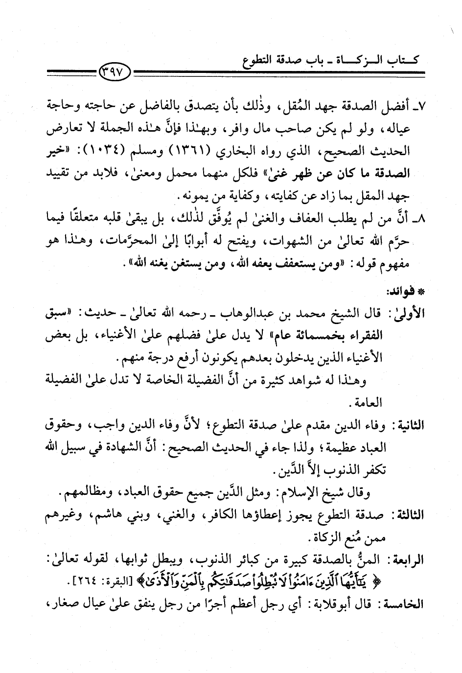 الأولى: قال الشيخ محمد بن عبد الوهاب -رحمه الله تعالى- حديث: "سبق الفقراء بخمسمائة عام" لا يدل على فضلهم على الأغنياء، بل بعض الأغنياء الذين يدخلون بعدهم يكونون أرفع درجة منهم.