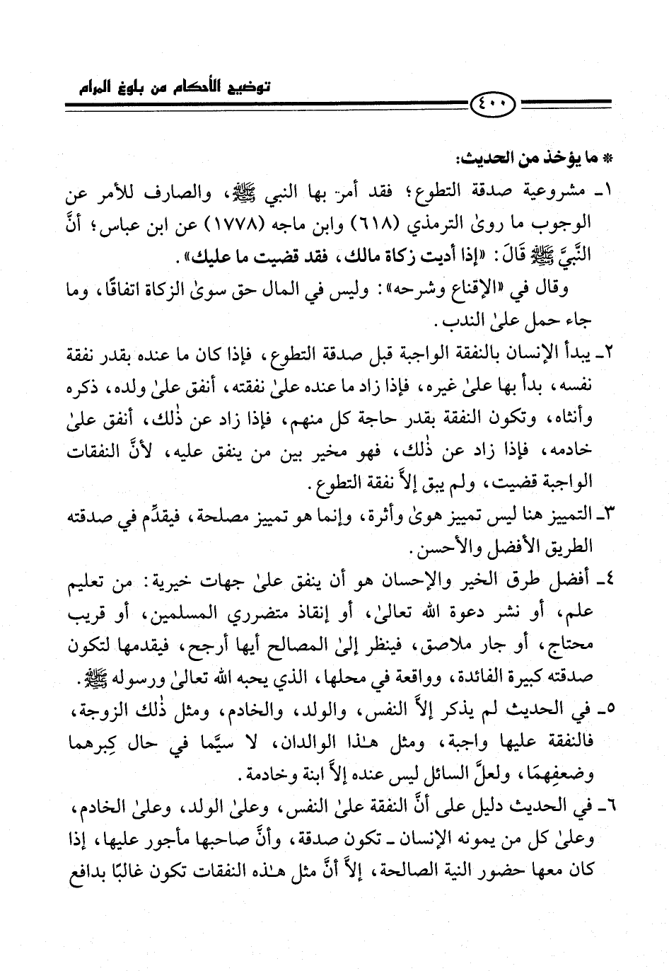2 - يبدأ الإنسان بالنفقة الواجبة قبل صدقة التطوع، فإذا كان ما عنده بقدر نفقة نفسه، بدأ بها على غيره، فإذا زاد ما عنده على نفقته، أنفق على ولده، ذكره وأنثاه، وتكون النفقة بقدر حاجة كل منهم، فإذا زاد عن ذلك، أنفق على خادمه، فإذا زاد عن ذلك، فهو مخير بين من ينفق عليه، لأنَّ النفقات الواجبة قضيت، ولم يبق إلاَّ نفقة التطوع.
