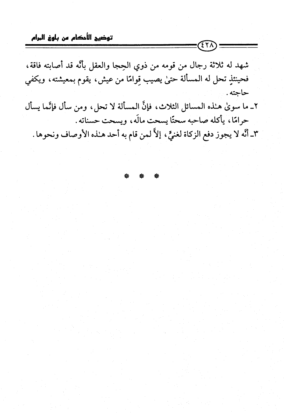 2 - ما سوى هذه المسائل الثلاث، فإن المسألة لا تحل، ومن سأل فإنَّما يسأل حرامًا، يأكله صاحبه سحتًا يسحت مالَه، ويسحت حسناته.