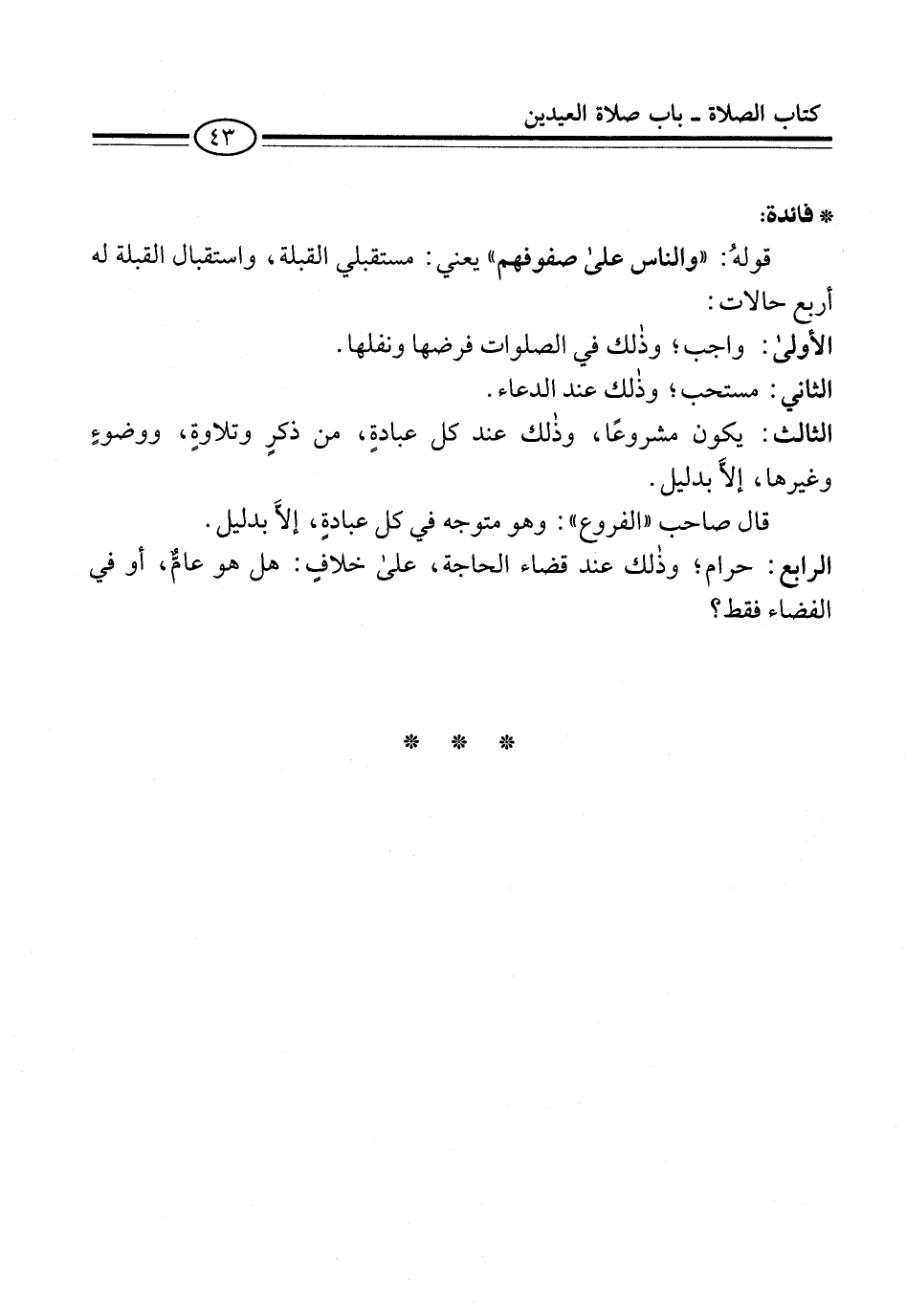 قال صاحب "الفروع": وهو متوجه في كل عبادةٍ، إلاَّ بدليل.