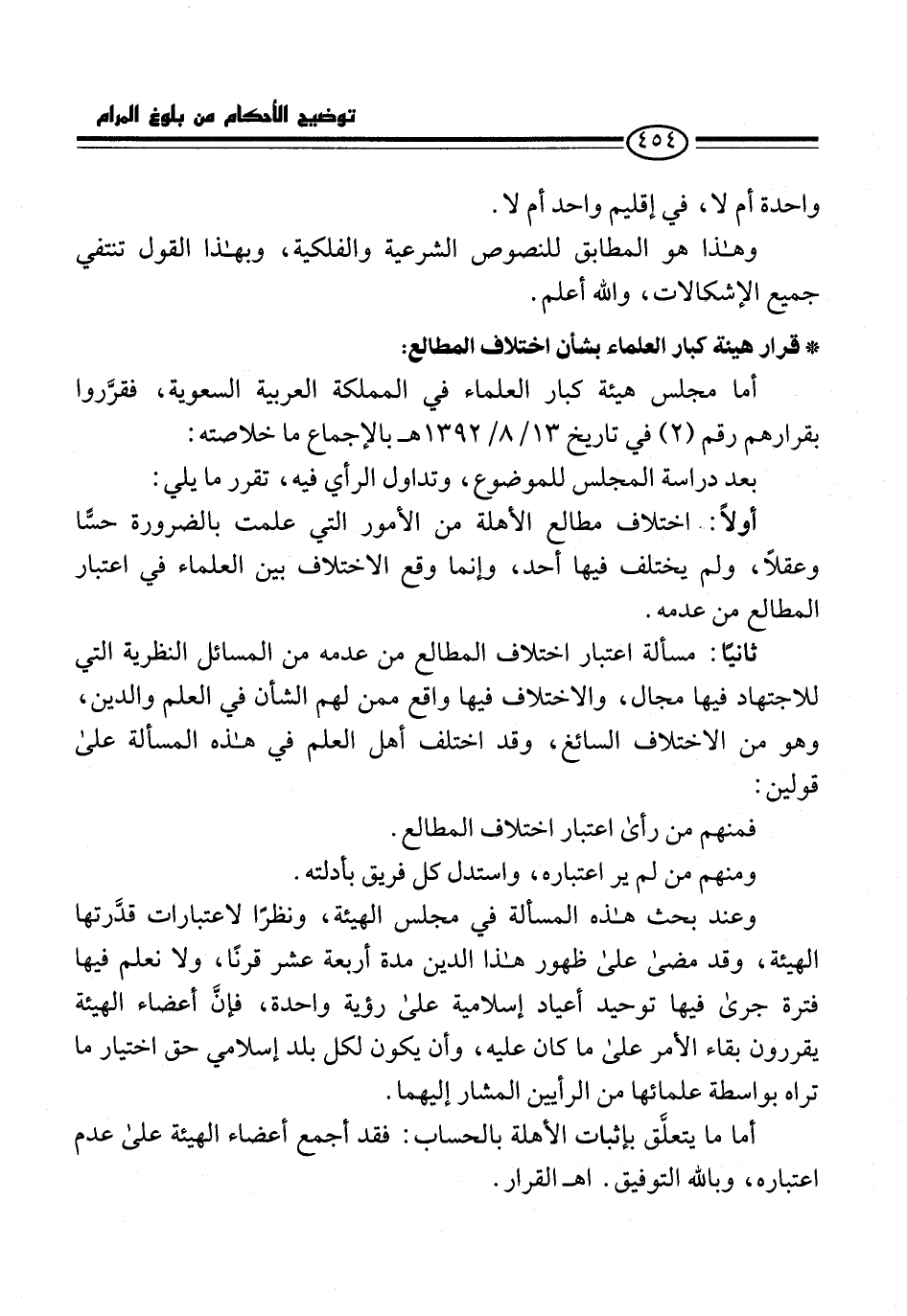 * قرار هيئة كبار العلماء بشان اختلاف المطالع: