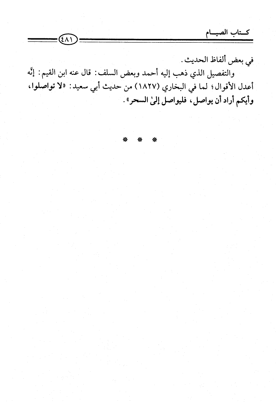 والتفصيل الذي ذهب إليه أحمد وبعض السلف: قال عنه ابن القيم: إنَّه أعدل الأقوال؛ لما في البخاري (1827) من حديث أبي سعيد: "لا تواصلوا، وأيكم أراد أن يواصل، فليواصل إلى السحر".