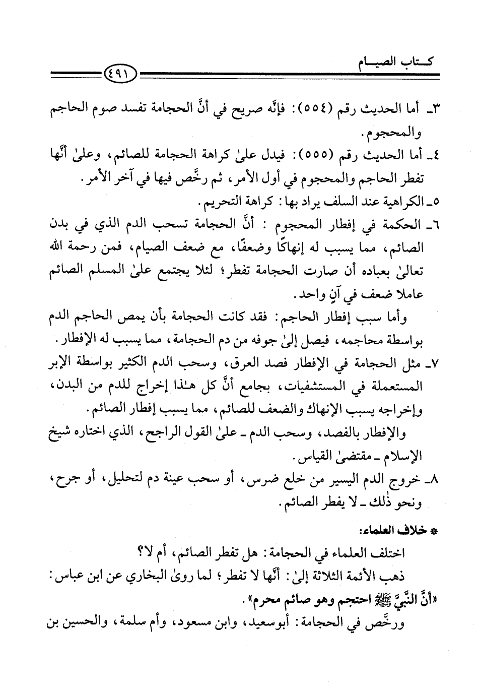 3 - أما الحديث رقم (554): فإنَّه صريح في أنَّ الحجامة تفسد صوم الحاجم والمحجوم.