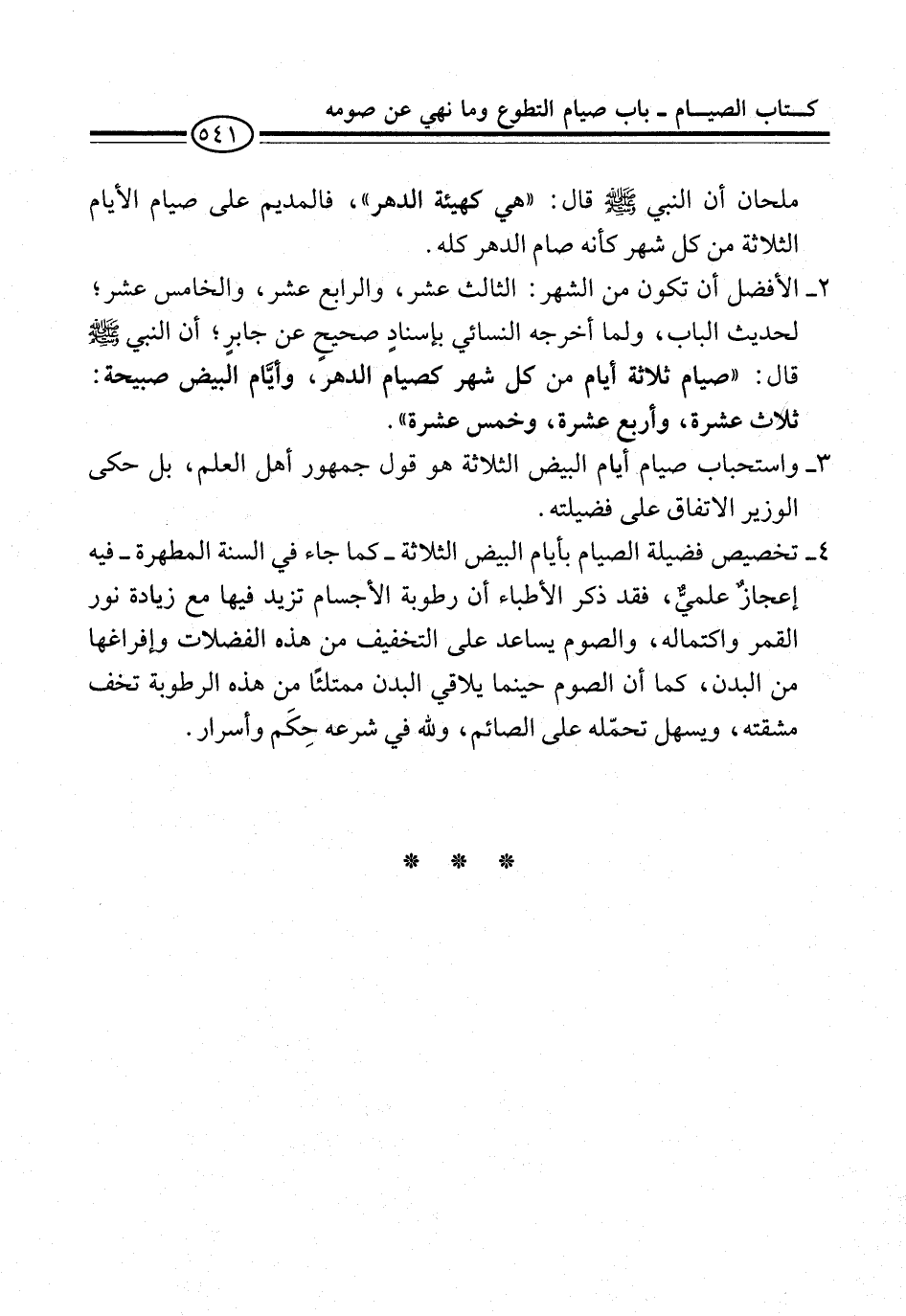 3 - واستحباب صيام. أيام البيض الثلاثة هو قول جمهور أهل العلم، بل حكى الوزير الاتفاق على فضيلته.