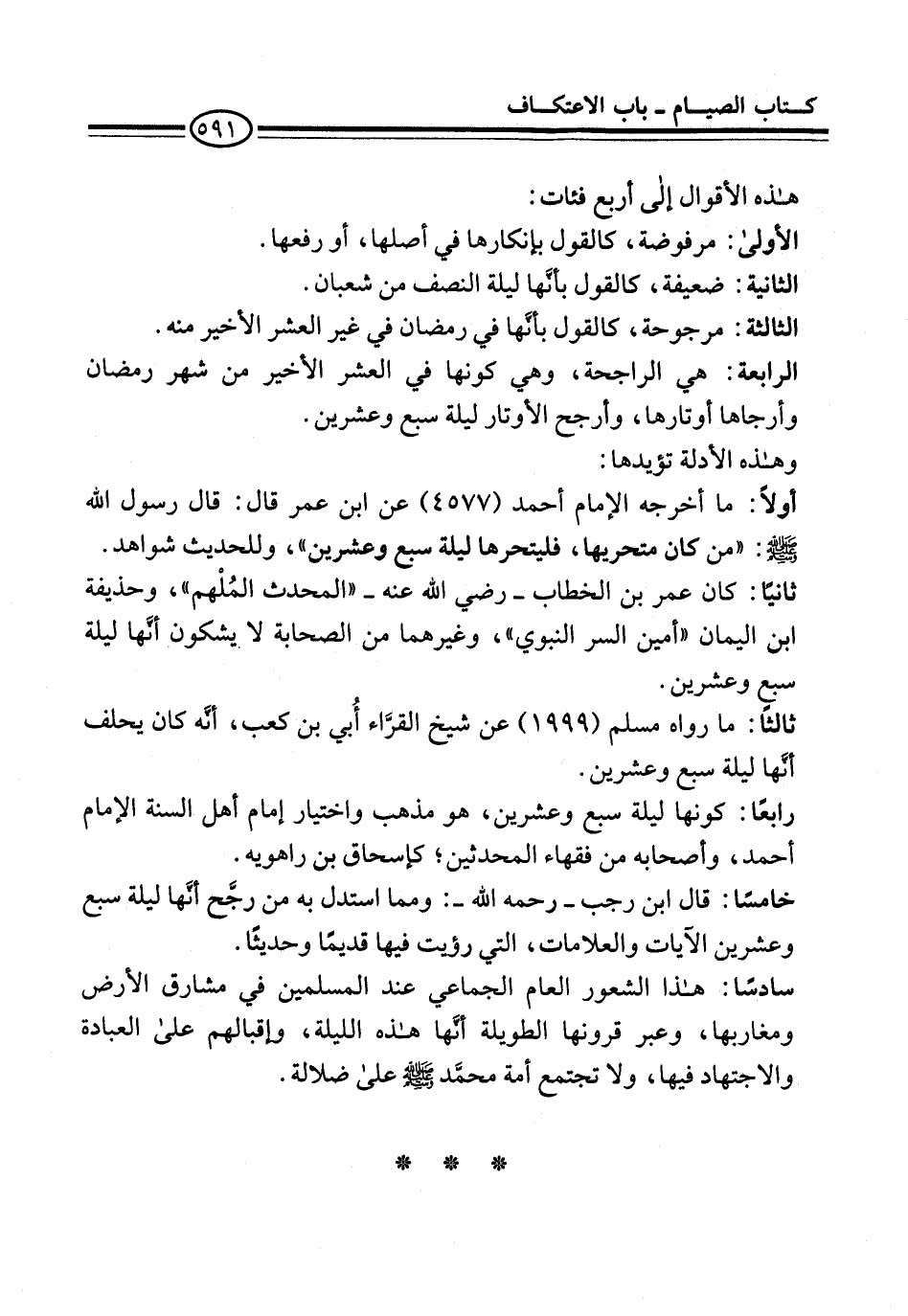 رابعًا: كونها ليلة سبع وعشرين، هو مذهب واختيار إمام أهل السنة الإمام أحمد، وأصحابه من فقهاء المحدثين؛ كإسحاق بن راهويه.