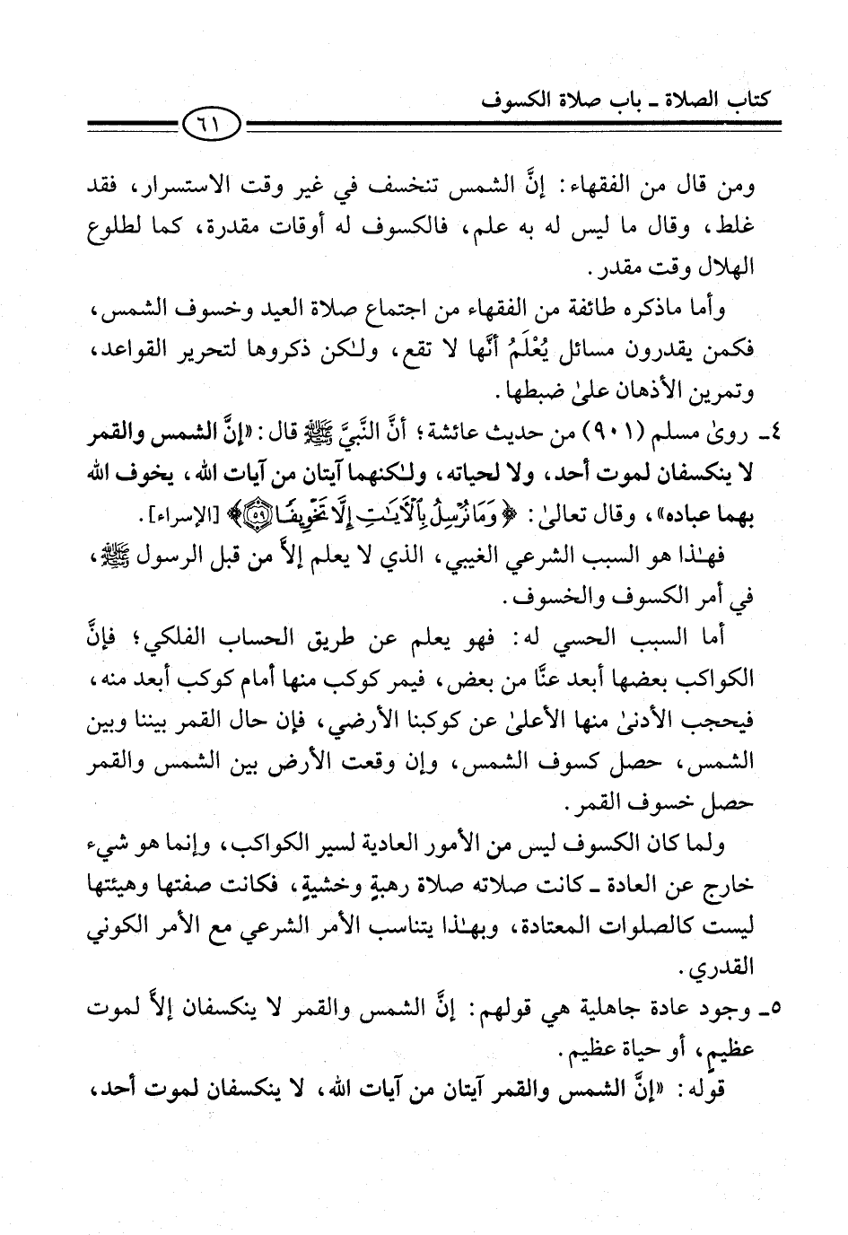 ومن قال من الفقهاء: إنَّ الشمس تنخسف في غير وقت الاستسرار، فقد غلط، وقال ما ليس له به علم، فالكسوف له أوقات مقدرة، كما لطلوع الهلال وقت مقدر.